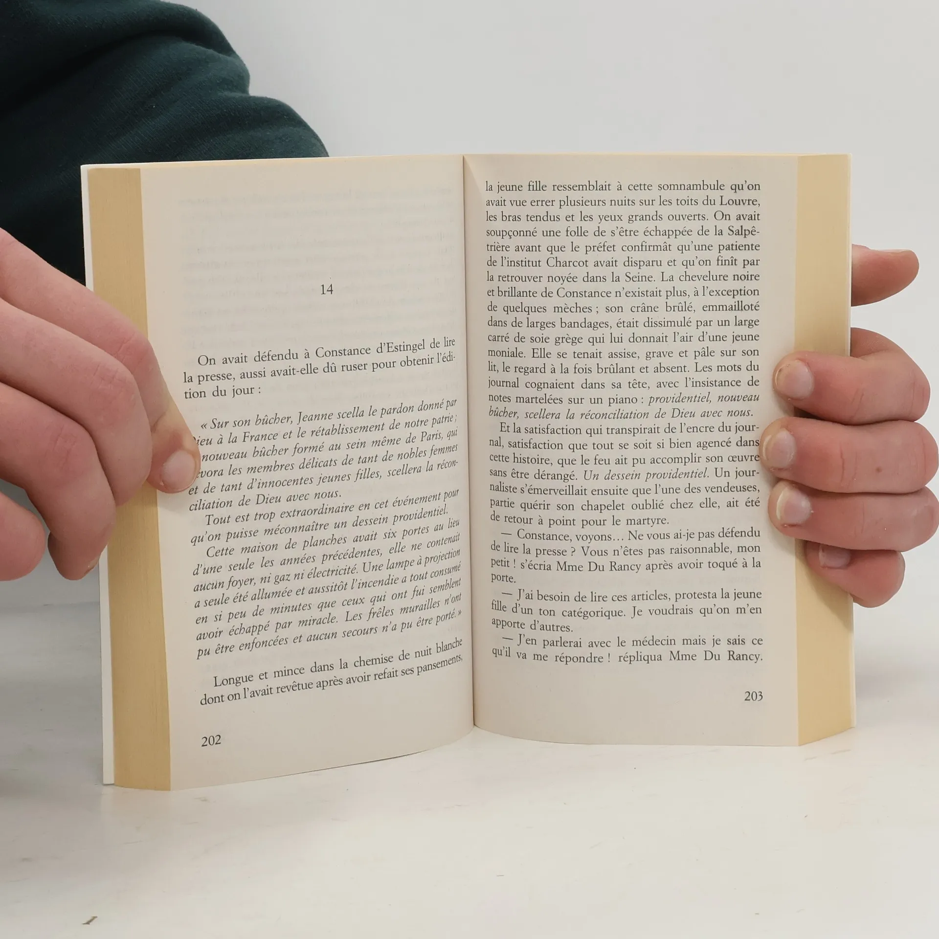 "Mai 1897. Le Tout-Paris se presse à la plus mondaine des ventes de charité. La charismatique duchesse d'Alençon, petite soeur de Sissi, a pris deux jeunes femmes sous sa protection en dépit du qu'en-dira-t-on. Scellant le destin de ces trois héroïnes, l'incendie du Bazar de la Charité bouscule ce monde cruel et raffiné et plonge Paris dans le deuil. Mais il permet aussi des amours et des rapprochements imprévus, des solidarités nouvelles, des libertés inespérées. Car naître à soi-même demande parfois d'en passer par le feu." -- Page 4 of cover