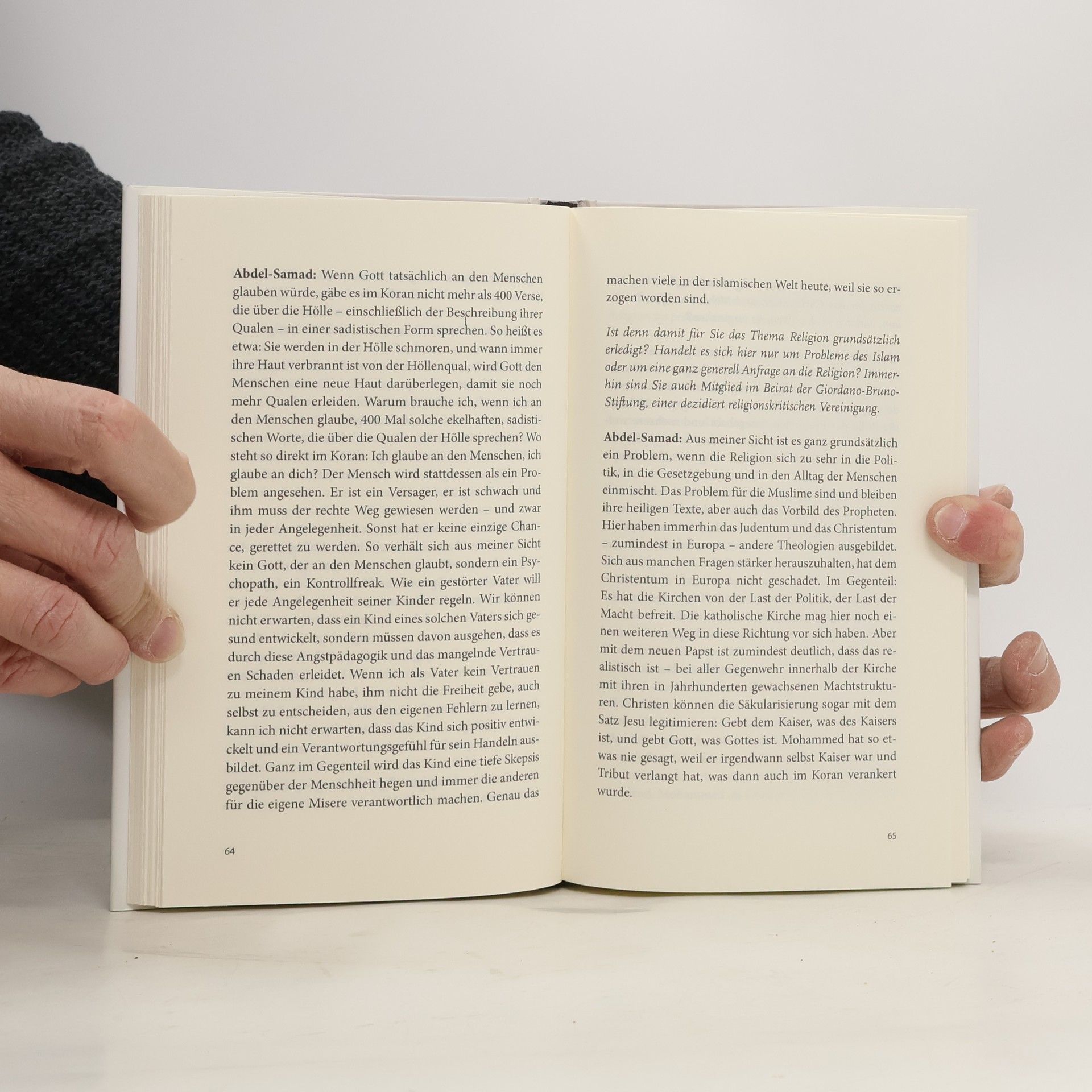 Die Gegensätze könnten größer kaum Auf der einen Seite der Islamkritiker Hamed Abdel-Samad, der Mohammed für einen Terroristen hält, und auf der anderen Seite der muslimische Theologe Mouhanad Khorchide, der für einen liberalen Islam wirbt. In dem vorliegenden Buch ringen die prominentesten Akteure der aktuellen Debatte miteinander. Persönlich schätzen sich sich, doch inhaltlich könnte der Konflikt größer nicht sein. Themen dieses Streitgesprächs sind Gewalt und Friedfertigkeit im Islam, die Rolle Mohammeds und die Herausforderung des sogenannten Islamischen Staats. Außerdem werden Fragen beantwortet, Wie muss der Koran gelesen werden? Überzeugen die neuen Ansätze islamischer Theologie über Gott und den Menschen? Und welche Rolle werden Muslime in Zukunft in der deutschen Gesellschaft spielen können? Zwei prominente Publizisten diskutieren, ohne einander zu schonen, über den Weg des Islam in die Zukunft. Ein Muss für jeden, der die aktuelle Debatte um den Islam und unsere Gesellschaft verfolgt.