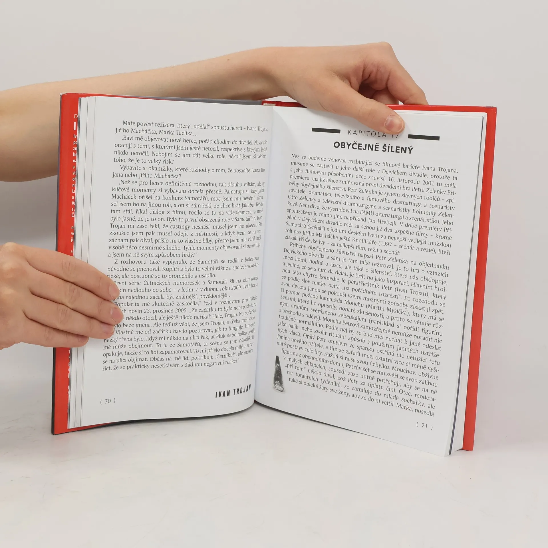Ivan Trojan je výjimečný herec, který se rozhodl pro herectví až těsně před maturitou na sportovním gymnáziu, přestože pochází z herecké rodiny. V mládí se věnoval sportu, zejména basketbalu, a stal se mistrem republiky v juniorech. Po absolvování DAMU se rozhodl pro Realistické divadlo, kde podepsal petici za propuštění Václava Havla, což vedlo k jeho vyhození z AUSu a odvelení do Humenného. Po revoluci přijal angažmá ve Vinohradském divadle, kde působil sedm let, než přešel do Dejvického divadla, které se pod vedením Miroslava Krobota stalo jedním z nejuznávanějších divadel v Česku. V roce 2015 si poprvé vyzkoušel režii. Své herecké kariéry se ujal až ve 35 letech, kdy natočil film Samotáře, který ho katapultoval mezi oblíbené herce. Dnes je nositelem šesti Českých lvů a dalších prestižních ocenění. Má čtyři syny s herečkou Klárou Pollertovou-Trojanovou. Je vášnivým fanouškem Bohemians 1905, pomáhal klubu v těžkých časech a dokonce si zahrál v ligovém utkání. Ivan Trojan se hlásí k pravdoláskařům a jeho životními hodnotami jsou pravda, snášenlivost a zodpovědnost. Dnes je považován za jednoho z nejlepších českých herců, a autorka jeho biografie ho představuje s hlubokým porozuměním.