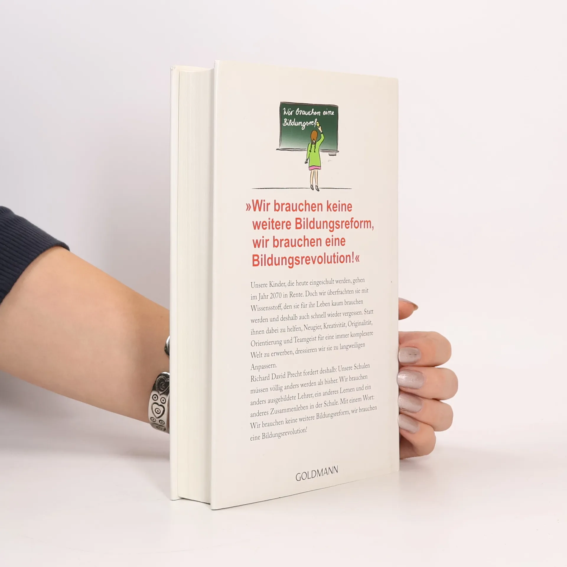 Der Verrat des Bildungssystems an unseren Kindern. Unsere Kinder, die heute eingeschult werden, gehen im Jahr 2070 in Rente. Doch wir überfrachten sie mit Wissensstoff, den sie für ihr Leben kaum brauchen werden. Statt ihnen dabei zu helfen, Neugier, Kreativität, Originalität, Orientierung und Teamgeist für eine immer komplexere Welt zu erwerben, dressieren wir sie zu langweiligen Anpassern. Demgegenüber stehen die Erkenntnisse der modernen Entwicklungspsychologie, der Lerntheorie und der Hirnforschung, die an unseren Schulen bis heute kaum berücksichtigt werden. Denn nur was mit Neugier gelernt wird, wird unseren Kindern wichtig und bedeutsam. Und nur was ihnen bedeutsam ist, weckt ihre Kreativität und spornt die Leistungsbereitschaft an. Der Philosoph und Bestsellerautor Richard David Precht fordert: Unsere Schulen müssen völlig anders werden als bisher. Wir brauchen andere Lehrer, andere Methoden und ein anderes Zusammenleben in der Schule. Mit einem Wort: Wir brauchen keine weitere Bildungsreform, wir brauchen eine Bildungsrevolution!