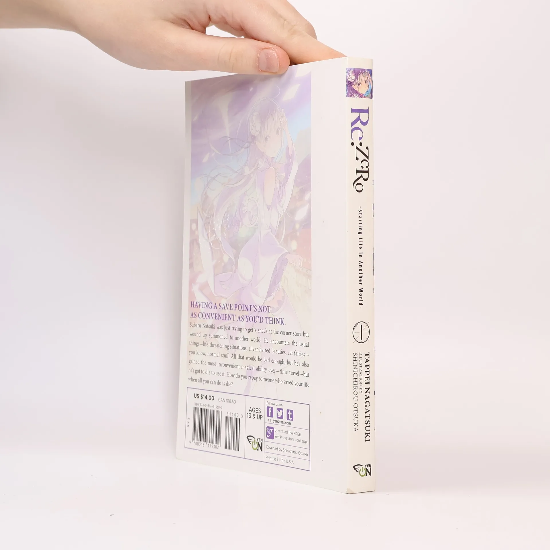 Subaru Natsuki was just trying to get to the convenience store but wound up summoned to another world. He encounters the usual things--life-threatening situations, silver haired beauties, cat fairies--you know, normal stuff. All that would be bad enough, but he's also gained the most inconvenient magical ability of all--time travel, but he's got to die to use it. How do you repay someone who saved your life when all you can do is die?
