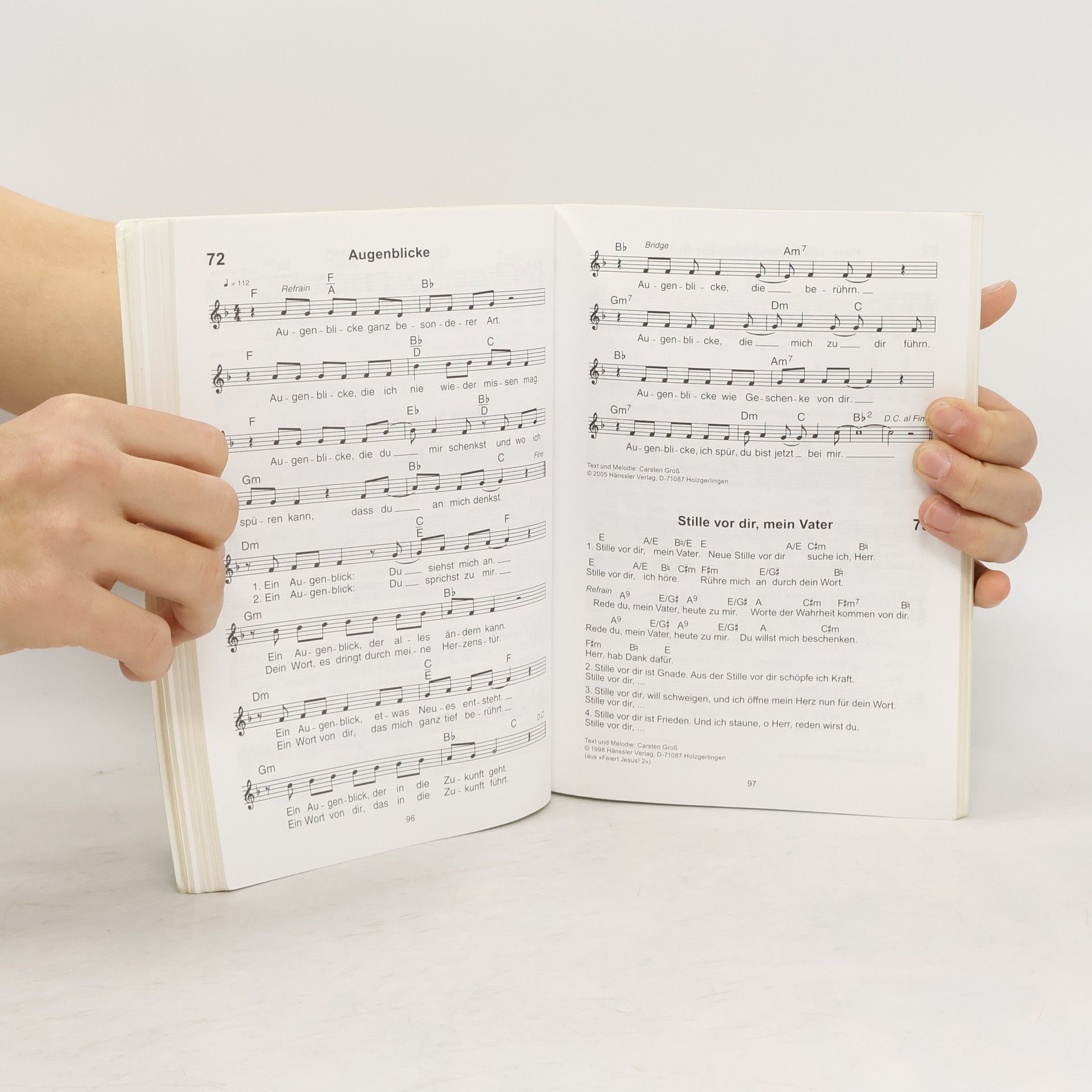 Als Feiert Jesus! 1995 als Idee für eine neue Lobpreisreihe begann, ahnte noch niemand, dass FeiertJesus! solche weiten Kreise ziehen und für viele zum Segen werden würde. Denn das Konzept wardenkbar einfach: Es wurde ein Liederbuch aus aktuellen, mittlerweile etablierten und nochunbekannten Lobpreisliedern zusammengestellt. Dabei wurde besonderer Wert auf eine klareinhaltliche Aussage und eine "mitsingbare " Melodie gelegt. Dem Liederbuch folgte rasch die ersteCD. Inzwischen sind 2 Liederbücher und 11 CDs erschienen. Das dritte Liederbuch folgt dem bewährtenKonzept. Es enthält mehr als 200 Lieder mit Gitarrengriffen. U. a. mit Gnade und Wahrheit HereI am to worship Zieh mich hin zu dir Du bist ein wunderbarer Hirt. Wir wünschen uns auch fürdie Zukunft, dass wir mit Feiert Jesus! dazu beitragen können, dass Menschen Jesus erleben, ihnloben und anbeten und dadurch gestärkt, ermutigt und fröhlich ihren Alltag bewältigen können. - All of meBei allem, was du anfängstCelebrateDanke, Vater, für das LebenEr kam als MenschFriede auf ErdenGot a reason for leaving againHerr der ganzen SchöpfungIch begegne dirJesus, friend of sinnersKomm` zum KreuzLight of the worldMit aller KraftNichts auf der WeltOft hab` ich vergessenPeacemakerRuft zu dem HerrnSaved by your mercyThere is a voiceÜber alle WeltVon allen Seiten umgibst du michWen der Sohn erlöstYes, I believeZwischen Himmel und Erde.