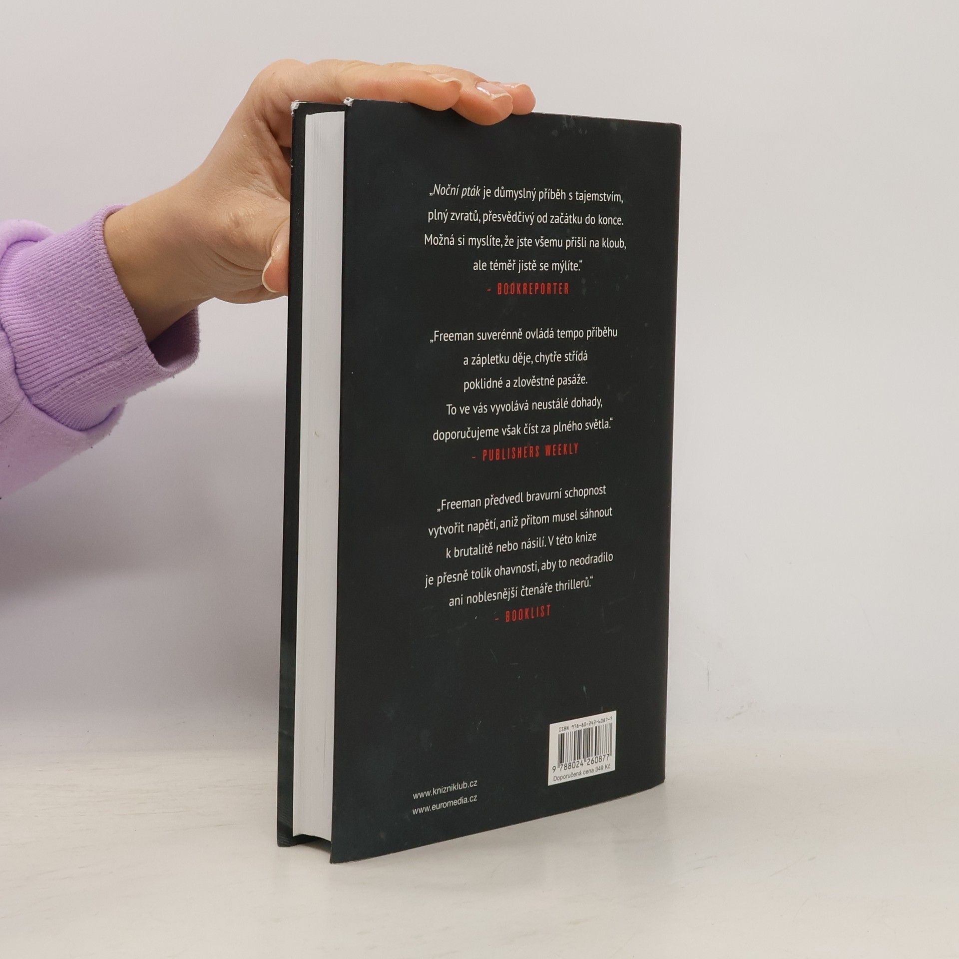 NEJDĚSIVĚJŠÍ VZPOMÍNKY JSOU TY, KTERÉ SI NEPAMATUJEŠ. Sanfranciský detektiv Frost Easton nevěří v náhody. Sebevražda dvou žen v šíleném záchvatu, jedné skokem z mostu, druhé kulkou na svatbě přítelkyně, musí mít něco společného. Stopy ho zavedou k Frankie Steinové, psychiatričce, která oběma zemřelým vymazala z paměti události, jež v nich vyvolávaly panické stavy. Frankie zná leckterá tajemství svých pacientů. Smí je však Frostovi vyzradit, aby ochránila jejich životy? Pak se jí ozve někdo, kdo si říká Noční pták. Kdo toho o obou případech ví až mnoho. A zná i Frankiina tajemství – a Frostovy noční můry… Brian Freeman je zkušený autor více než tuctu psychothrillerů, jeho knihy vycházejí ve 20 jazycích a 46 zemích. Noční pták je úvodním dílem série případů Frosta Eastona.