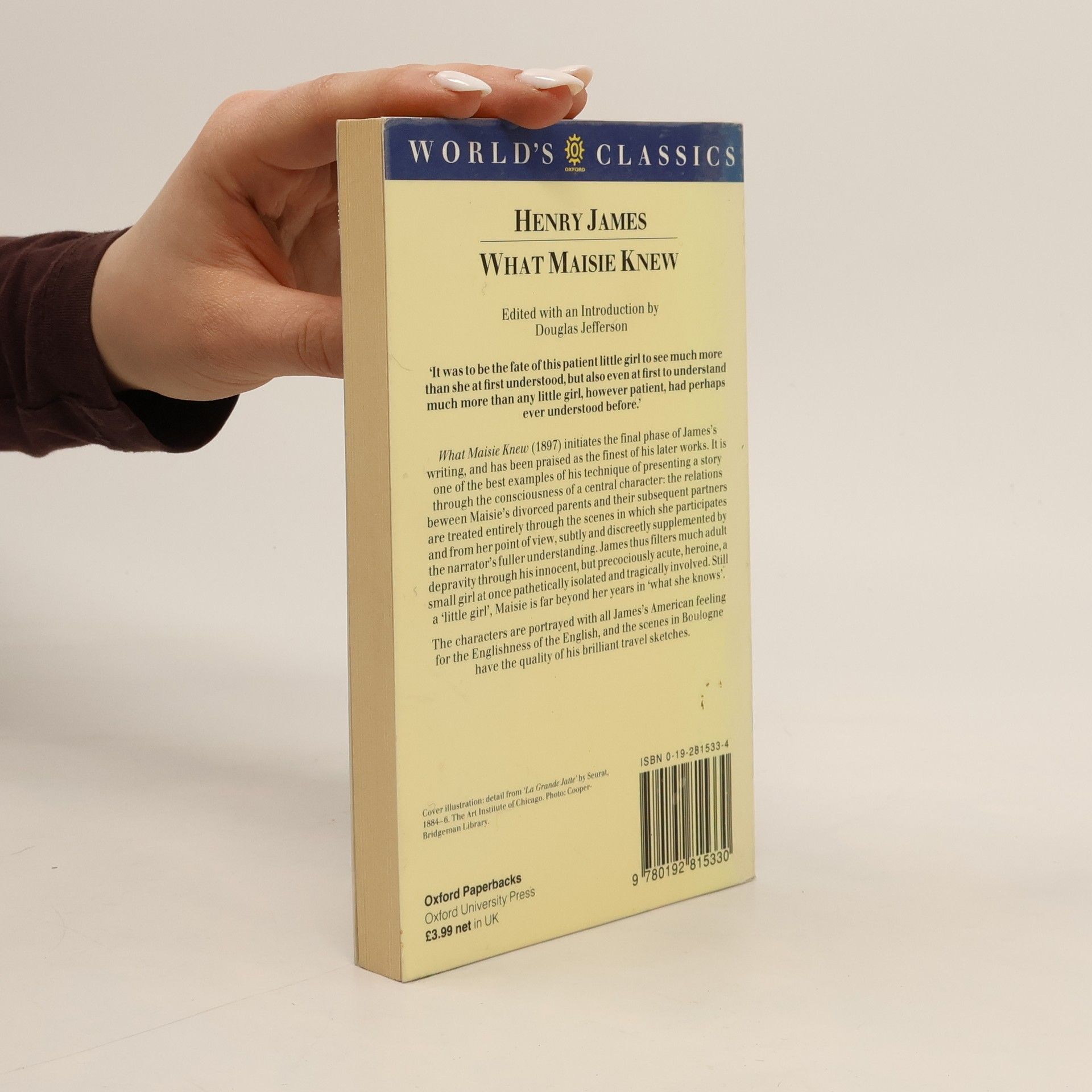 What Maisie Knew (1897) represents one of James's finest reflections on the rites of passage from wonder to knowledge, and the question of their finality. The child of violently divorced parents, Maisie Farange opens her eyes on a distinctly modern world. Mothers and fathers keep changing their partners and names, while she herself becomes the pretext for all sorts of adult sexual intrigue.In this classic tale of the death of childhood, there is a savage comedy that owes much to Dickens. But for his portrayal of the child's capacity for intelligent `wonder', James summons all the subtlety he devotes elsewhere to his most celebrated adult protagonists. Neglected and exploited by everyone around her, Maisie inspires James to dwell with extraordinary acuteness on the things that may pass between adult and child. In addition to a new introduction, this edition of the novel offers particularly detailed notes, bibliography, and a list of variant readings.