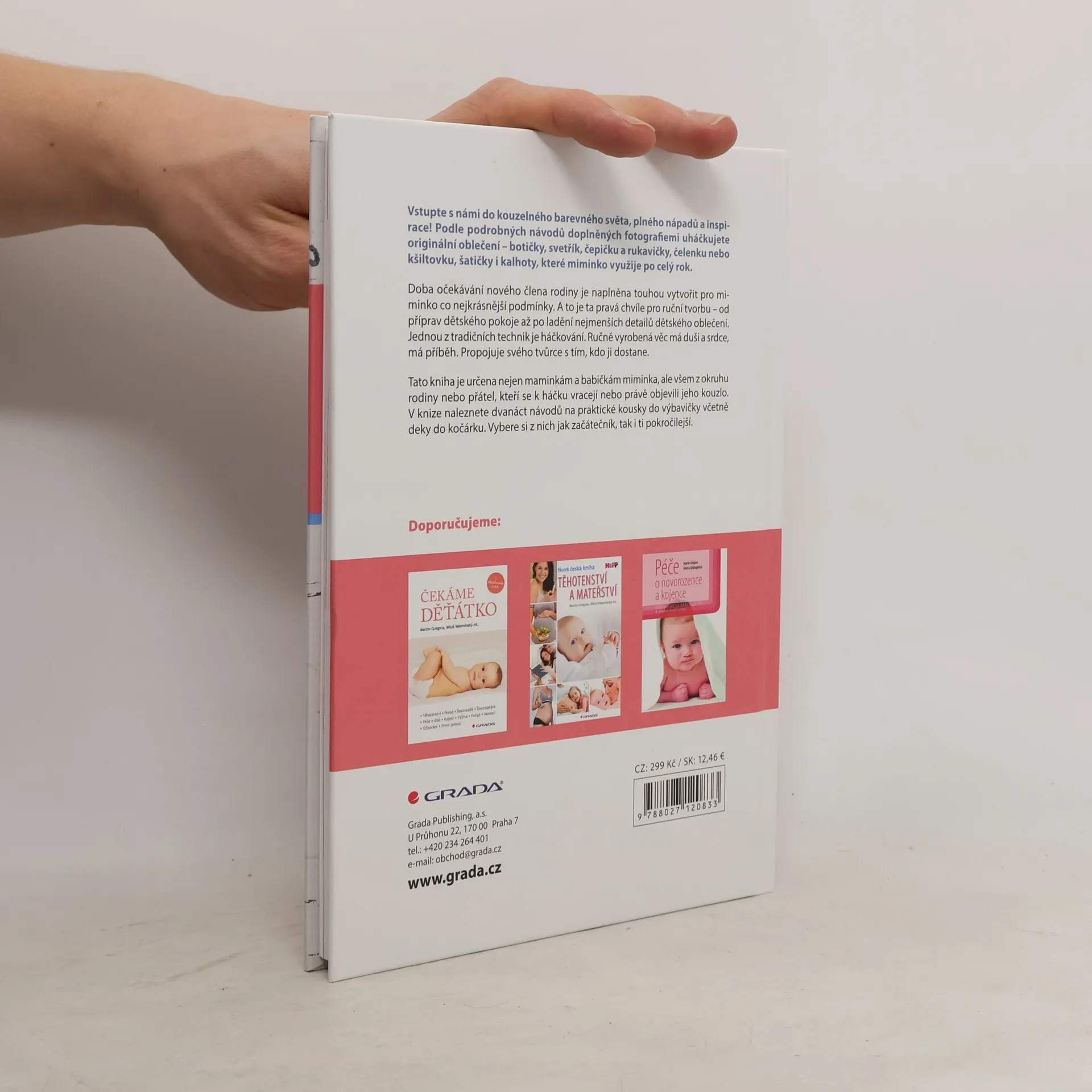 Vstupte s námi do kouzelného barevného světa, plného nápadů a inspirace! Podle podrobných návodů doplněných fotografiemi uháčkujete originální oblečení – botičky, svetřík, čepičku a rukavičky, čelenku nebo kšiltovku, šatičky i kalhoty, které miminko využije po celý rok. Doba očekávání nového člena rodiny je naplněna touhou vytvořit pro miminko co nejkrásnější podmínky. A to je ta pravá chvíle pro ruční tvorbu – od příprav dětského pokoje až po ladění nejmenších detailů dětského oblečení. Jednou z tradičních technik je háčkování. Ručně vyrobená věc má duši a srdce, má příběh. Propojuje svého tvůrce s tím, kdo ji dostane. Tato kniha je určena nejen maminkám a babičkám miminka, ale všem z okruhu rodiny nebo přátel, kteří se k háčku vracejí nebo právě objevili jeho kouzlo. V knize naleznete dvanáct návodů na praktické kousky do výbavičky včetně deky do kočárku. Vybere si z nich jak začátečník, tak i ti pokročilejší.