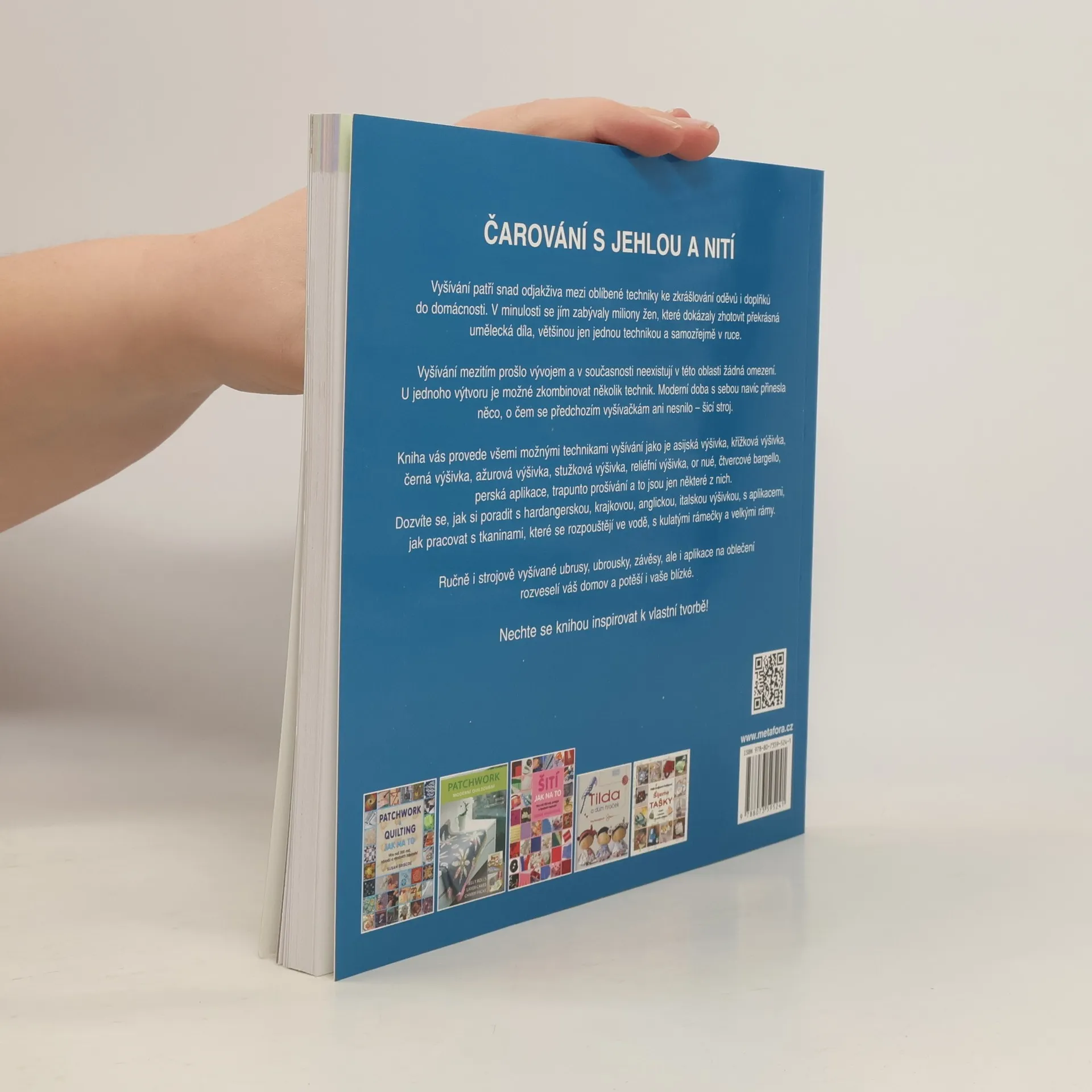 Čarování s jehlou a nití, světové techniky ručního i strojového vyšívání Vyšívání patří snad odjakživa mezi oblíbené techniky ke zkrášlování oděvů i doplňků do domácnosti. V minulosti se jím zabývaly miliony žen, které dokázaly zhotovit překrásná umělecká díla, většinou jen jednou technikou a samozřejmě v ruce. Vyšívání mezitím prošlo vývojem a v současnosti neexistují v této oblasti žádná omezení. U jednoho výtvoru je možné zkombinovat několik technik. Moderní doba s sebou navíc přinesla něco, o čem se předchozím vyšívačkám ani nesnilo – šicí stroj. Kniha vás provede všemi možnými technikami vyšívání jako je asijská výšivka, černá výšivka, or nué, čtvercové bargello, perská aplikace, trapunto prošívání, a to jsou jen některé z nich. Dozvíte se, jak si poradit s hardangerskou, krajkovou, anglickou, italskou výšivkou, s aplikacemi, jak pracovat s tkaninami, které se rozpouštějí ve vodě, s kulatými rámečky a velkými rámy. Ručně i strojově vyšívané ubrusy, ubrousky, závěsy, ale i aplikace na oblečení rozveselí váš domov a potěší i vaše blízké. Nechte se knihou inspirovat k vlastní tvorbě!