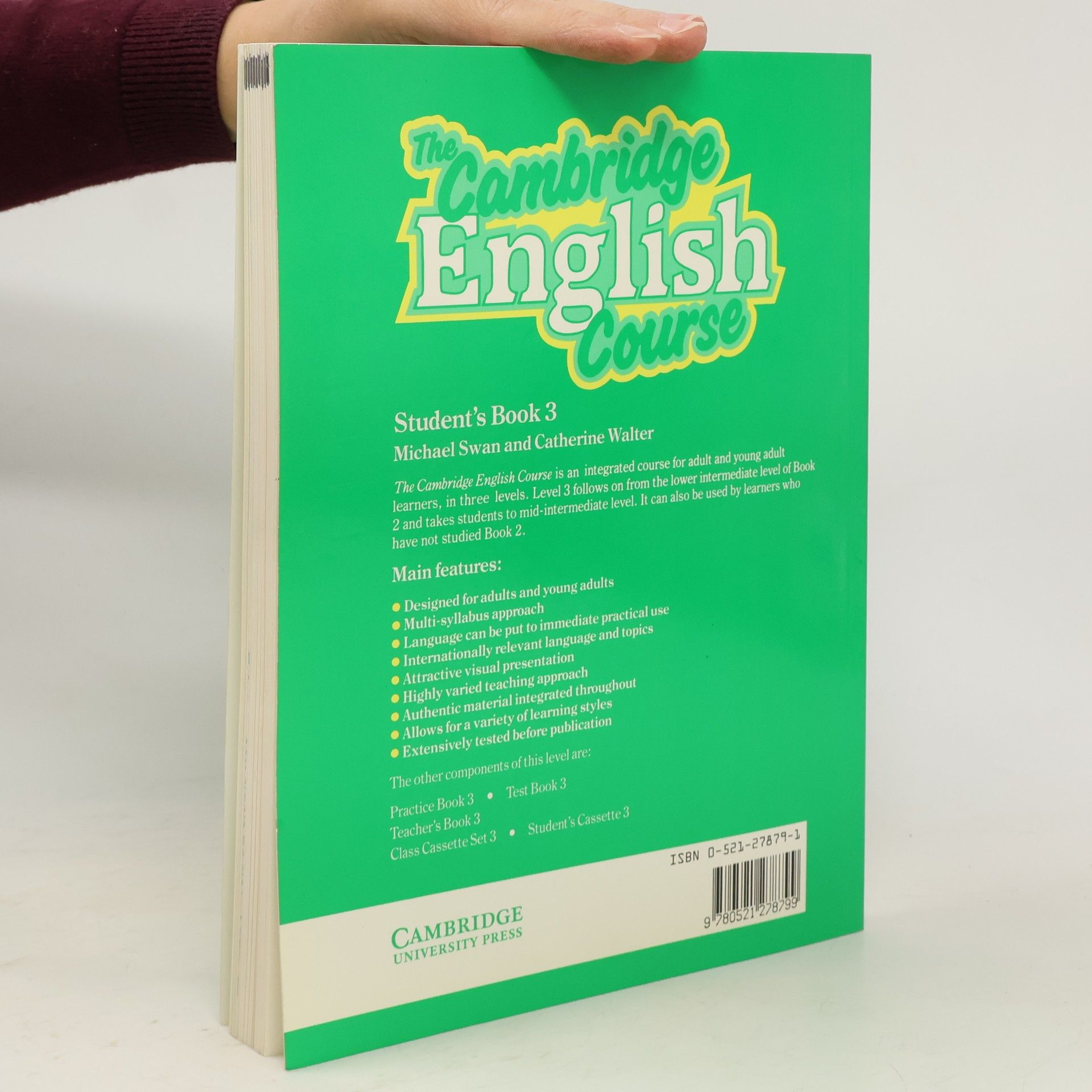 Widely acclaimed by teachers and learners throughout the world, The Cambridge English Course has set new standards in course design. In three levels, from complete beginner to intermediate, it offers: - a thorough and complete course in around 100 hours per level - the original multi-syllabus course structure¼ex high levels of achievement - original, stimulating and varied topics - wide variety of exercise types¼ex exposure to authentic English right from the start - detailed, explicit guidance and support for the teacher - balanced coverage of all language skills Each level consists of a Student's Book, Practice Book (with or without key), Teacher's Book, Test Book, Class Cassette Set and Student's Cassette. Split editions of each of the Student's Books in three parts are available for added flexibility.