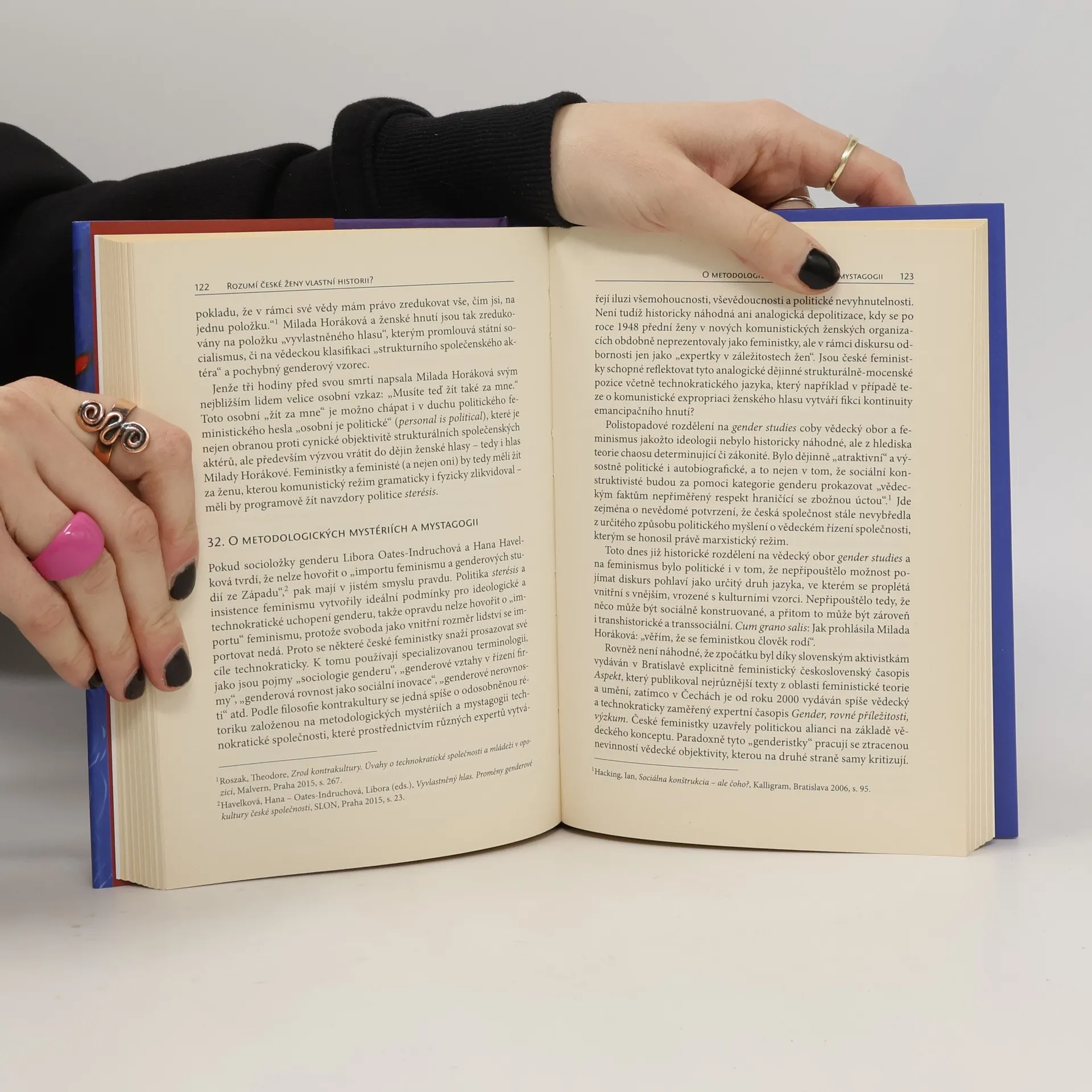 Tato kritická studie spojuje kritickou epistemologii s existenciální ontologií a zkoumá příběh české političky a feministky Milady Horákové. Na základě historických dokumentů a jejích posledních slov před popravou ukazuje zásadní proměny, které nastaly po roce 1948 v českém ženském hnutí a společnosti vlivem totalitární praxe. Dále se zaměřuje na dopady těchto změn na ženský aktivismus a genderový diskurs po roce 1989. Studie se snaží doložit, že popravou Milady Horákové a likvidací prvorepublikového feminismu skončil západní evropský feminismus, a že obnovené formy ženského aktivismu po roce 1989 zůstaly ve stínu technokratického a politicky stranického feminismu. V kontextu osudu Horákové a likvidace ženského hnutí poukazuje na mýty, které podporují sebedestruktivní politické stranictví a potlačují jedinečnost ženského já. Studie vyzývá k opuštění teorie genderu, která se stala součástí revizionistických pohledů na komunistický režim, a nabízí nový pohled na ženské hnutí a naši minulost. Doprovázejí ji barevné olejové obrazy a pastely Ivy Vodrážkové z jejího undergroundového období v 70. a 80. letech 20. století.