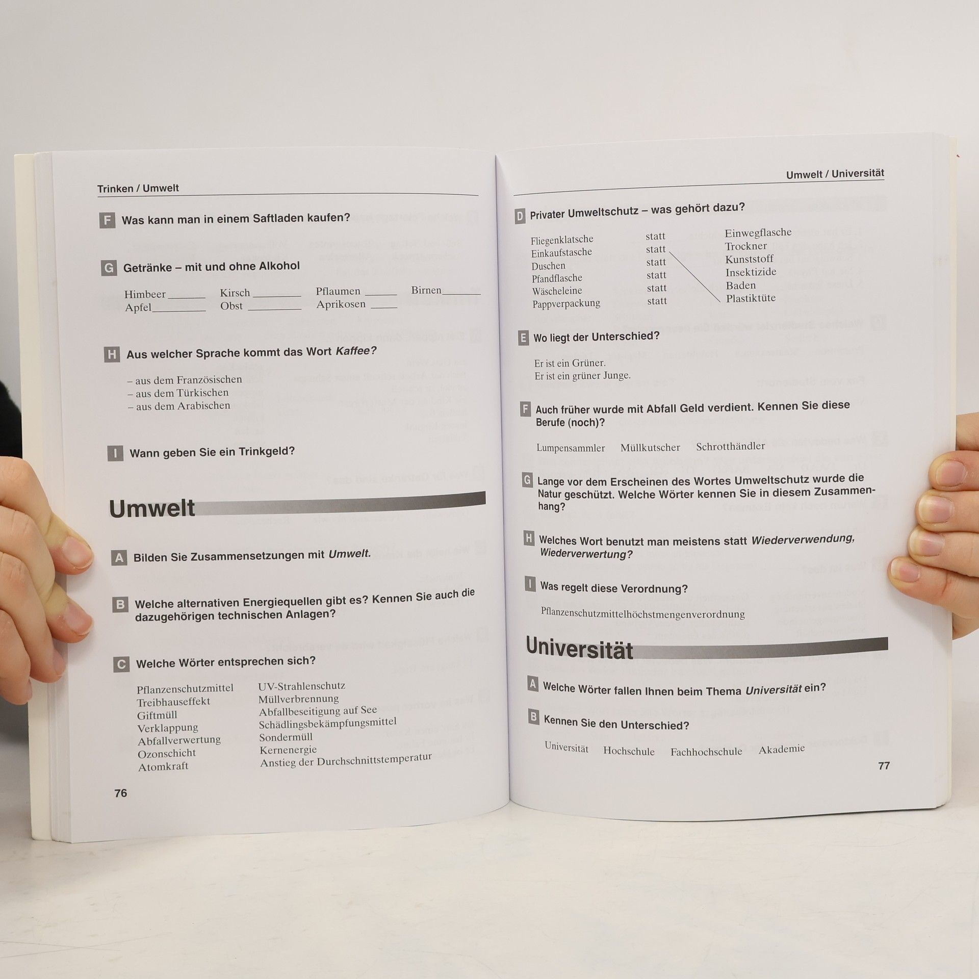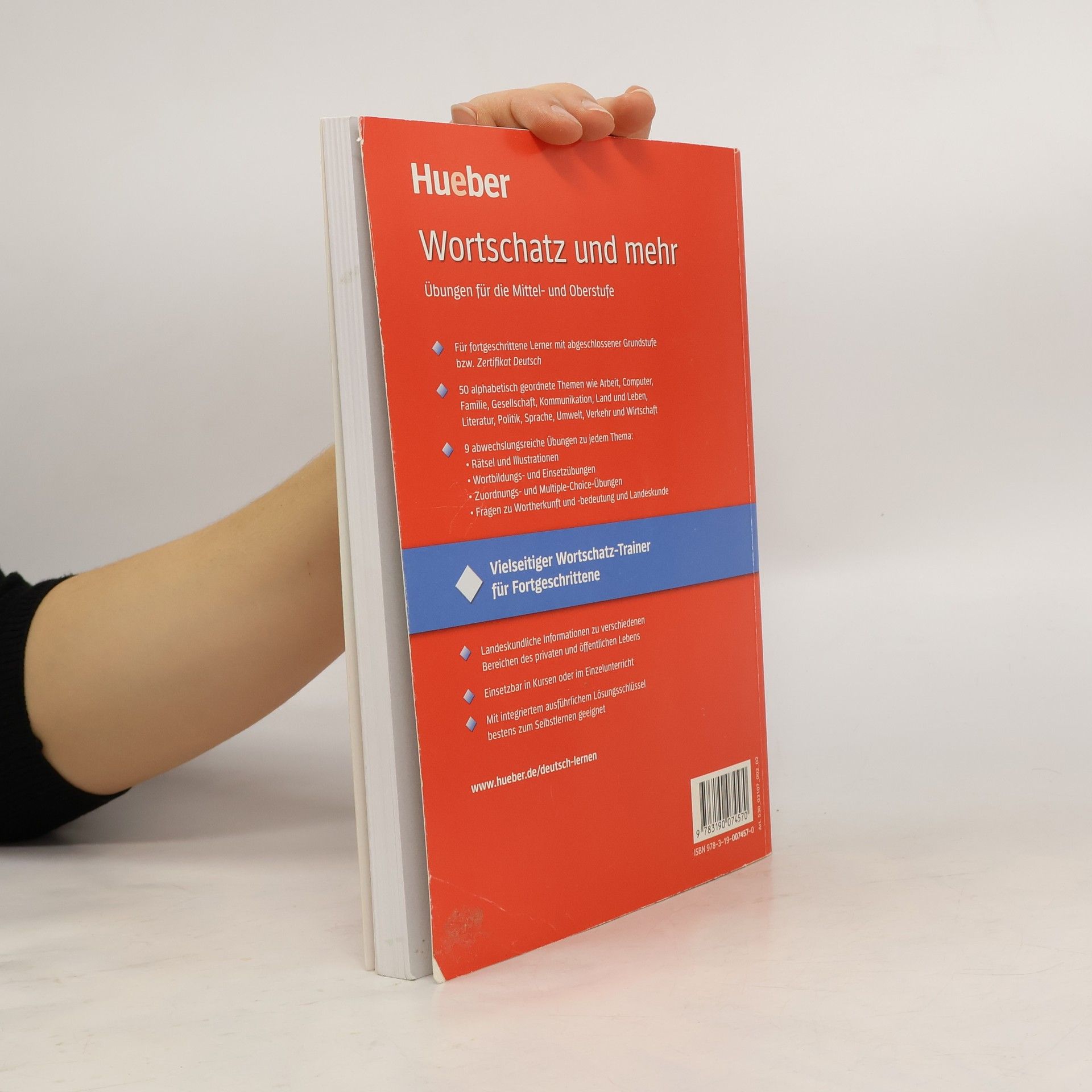 Niveau A2 bis C2 - Für fortgeschrittene Lerner mit abgeschlossener Grundstufe bzw. Zertifikat Deutsch als Fremdsprache - 50 alphabetisch geordnete Themen wie Arbeit, Computer, Familie, Gesellschaft, Kommunikation, Land und Leben, Literatur, Politik, Sprache, Umwelt, Verkehr und Wirtschaft - 9 abwechslungsreiche Übungen zu jedem Thema: Rätsel und Illustrationen, Wortbildungs- und Einsetzübungen, Zuordnungs- und Multiple-Choice-Übungen, Fragen zu Wortherkunft und -bedeutung und Landeskunde - Landeskundliche Informationen zu verschiedenen Bereichen des privaten und öffentlichen Lebens - Einsetzbar in Kursen oder im Einzelunterricht - Mit integriertem ausführlichem Lösungsschlüssel bestens zum Selbstlernen geeignet