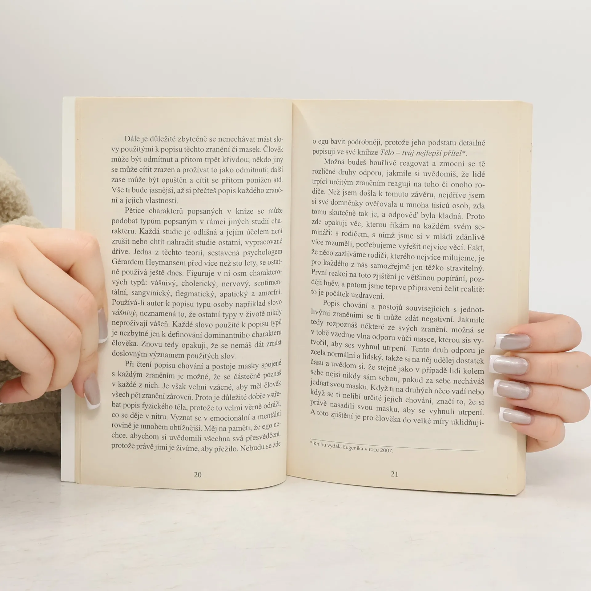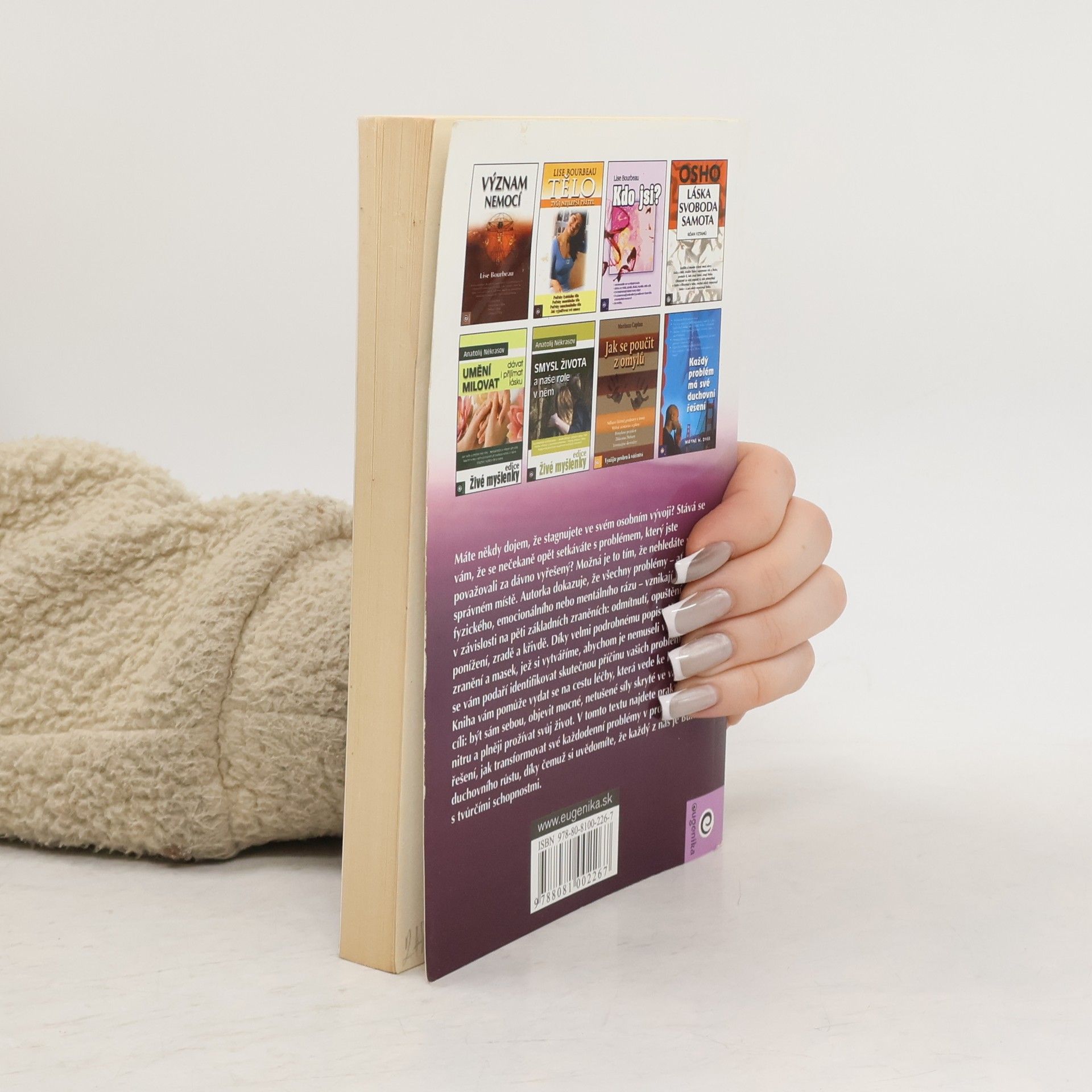 Autorka dokazuje, že všechny problémy - ať již fyzického, emocionálního nebo mentálního rázu - vznikají v závislosti na pěti základních zraněních: odmítnutí, opuštění, ponížení, zradě a křivdě. Díky podrobnému popisu těchto zranění a masek, jež si vytváříme, abychom je nemuseli vidět a cítit, se vám podaří identifikovat skutečnou příčinu vašich problémů. Kniha vám pomůže vydat se na cestu léčby, která vede ke kýženému cíli: být sám sebou a objevit mocné, netušené síly skryté ve vašem nitru.