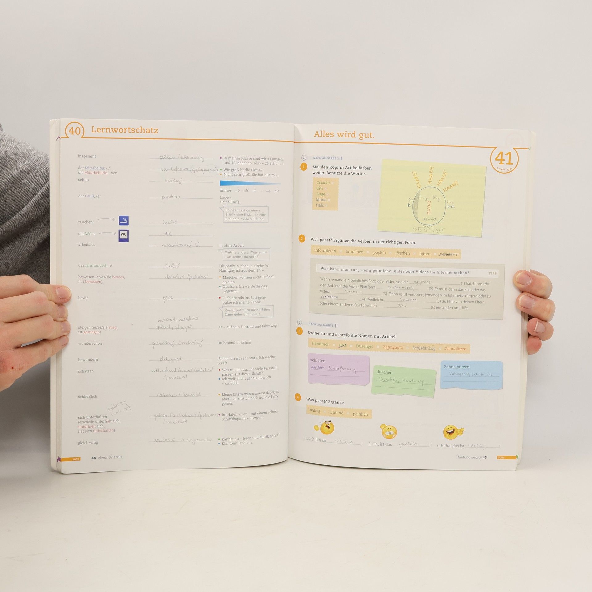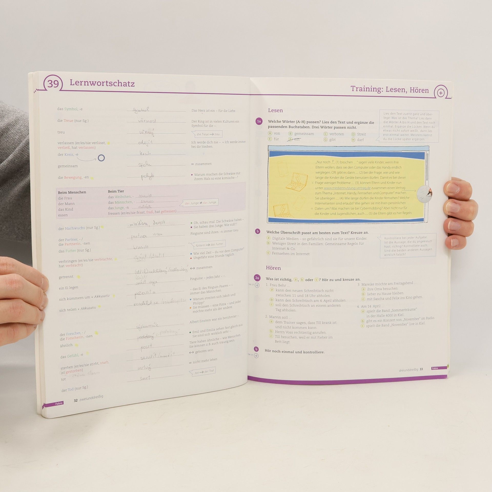 Zielniveau B1/1 - jede Lektion enthalt sieben vierfarbige Seiten - zahlreiche ubungen zu Grammatik, Wortschatz und Redemittel fur die Arbeit im Unterricht oder zum selbstandigen Lernen zu Hause - umfangreiches Angebot an selbstentdeckender, kontrastiv angelegter Grammatikarbeit - klar ausgewiesenes, kleinschrittiges Schreibtraining - ausfuhrliches Phonetiktraining - klares wechselseitiges Verweissystem zwischen Kurs- und Arbeitsbuch - ubersichtliche Prasentation des Lernwortschatzes - pro Modul zwei Seiten Fertigkeitentraining sowie eine Seite Selbstevaluation (Kann-Beschreibungen des GER) - ausgewiesene Portfolio-Aufgaben - ubungen zur Binnendifferenzierung - Lerntipps - Arbeitsblatter fur Partneraufgaben des Kursbuchs im Anhang // Achtung: Falls auf dem Foto keine Anhänge abgebildet sind, sind diese nicht im Lieferumfang enthalten.