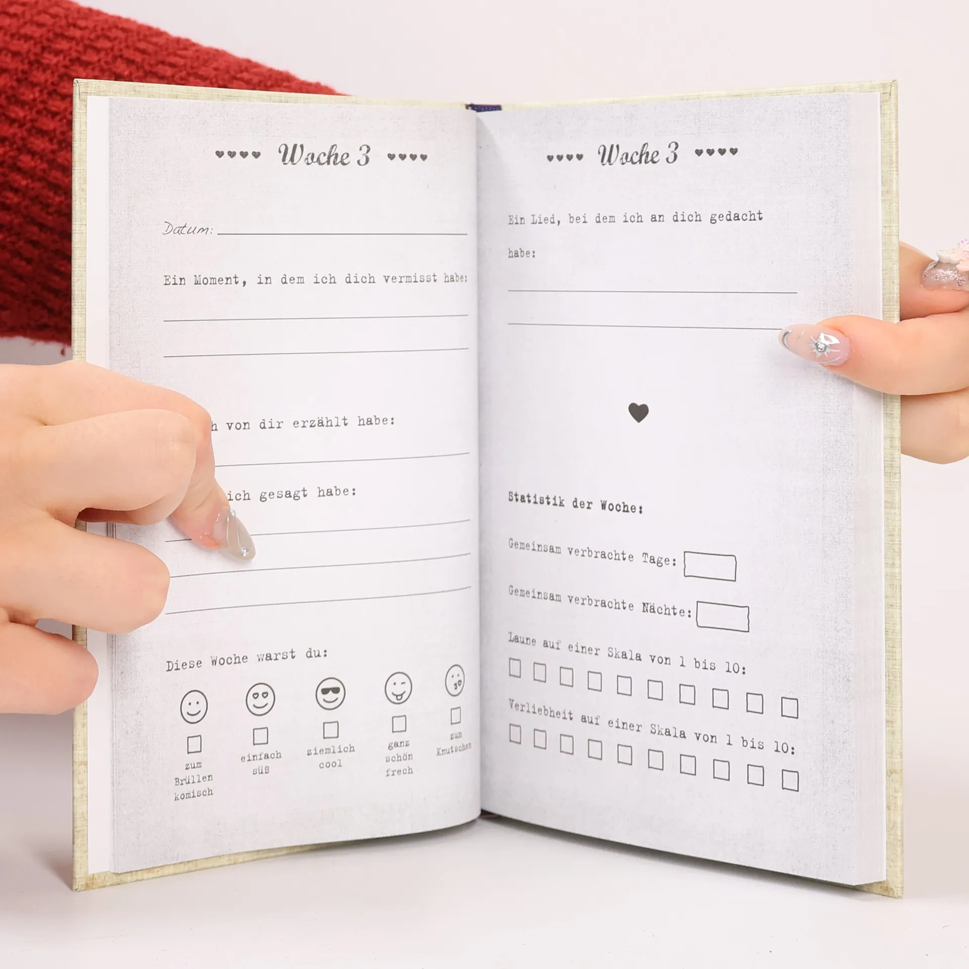 Oft sind es alltägliche Momente, die eine Beziehung oder eine Freundschaft so besonders machen und zwei Menschen miteinander verbinden. Aber was eben noch bezaubernd, lustig oder herzerwärmend war, ist ein paar Tage später meist schon wieder vergessen. In diesem Eintragebuch können alle diese schönen Erlebnisse Woche für Woche festgehalten werden – ein ganzes Jahr lang. Tiefgründige, witzige und emotionale Fragen oder Denkanstöße helfen dabei, festzuhalten, was man mit dem Partner oder der besten Freundin im vergangenen Jahr gemeinsam erlebt und gefühlt hat, was man besonders geschätzt hat und wofür man dem anderen dankbar ist. Ausgefüllt ist dieses Buch nicht nur eine einzigartige Sammlung sonst vergessener Erinnerungen, sondern auch ein wundervoller und ganz persönlicher Liebes- oder Freundschaftsbeweis.