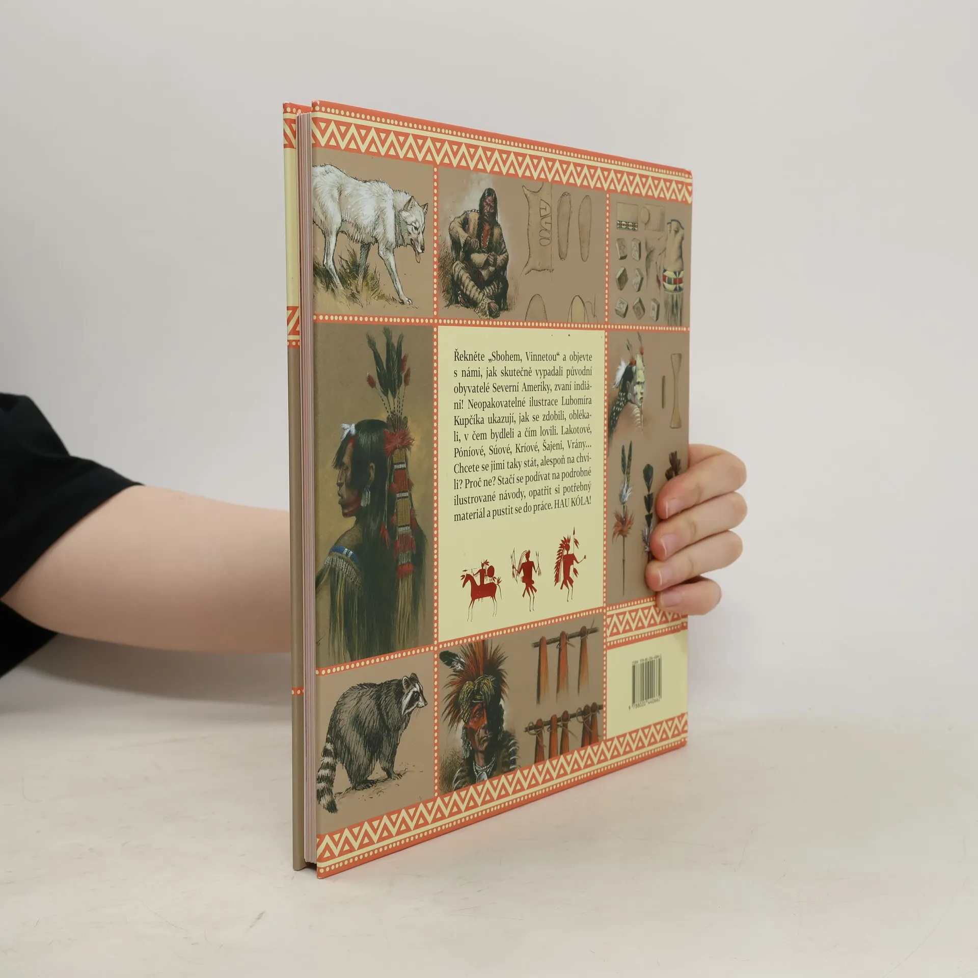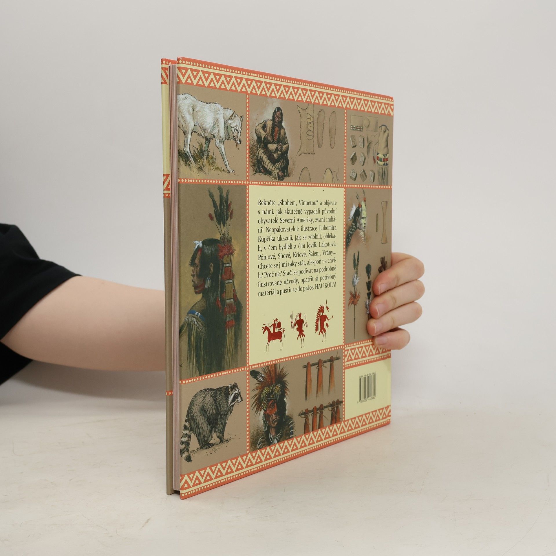 Jak skutečně vypadali indiáni a indiánky severoamerických plání? Jak se oblékali, zdobili, česali, čím lovili zvěř, jaké měli hudební nástroje a s čím si hrály indiánské děti? Jak se pomalovat jako Sioux? Z čeho si ušít indiánský plášť, vyrobit si čelenku, správný luk a šípy, buben nebo dýmku míru? Výjimečná publikace malíře a výtvarníka Lubomíra Kupčíka boří mýty a idylické představy z časů Vinnetoua. Slouží zároveň jako obrazová encyklopedie autentických způsobů oblékání severoamerických indiánů i jako originální, podrobná příručka pro děti s návody na výrobu nejrůznějších předmětů a kusů oblečení. I s popisem, z čeho je indiáni původně vyráběli a s přehledem živočichů, jejichž kůže, kosti a jiné části těla k výrobě používali.