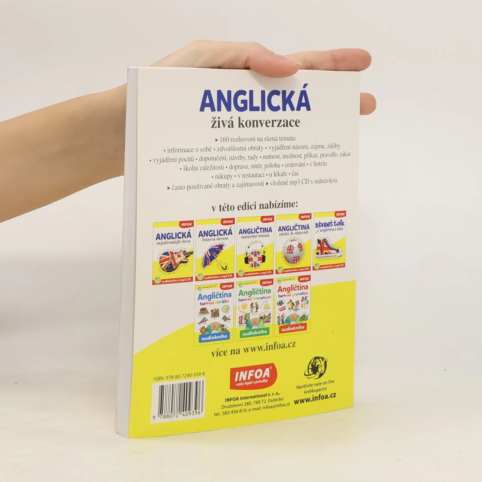 Anglická živá konverzace obsahuje 160 rozhovorů na různá témata např. Informace o sobě, Zdvořilostní obraty, Cestování, Nákupy, Čas... Je obohacena o často používané obraty a zajímavosti.