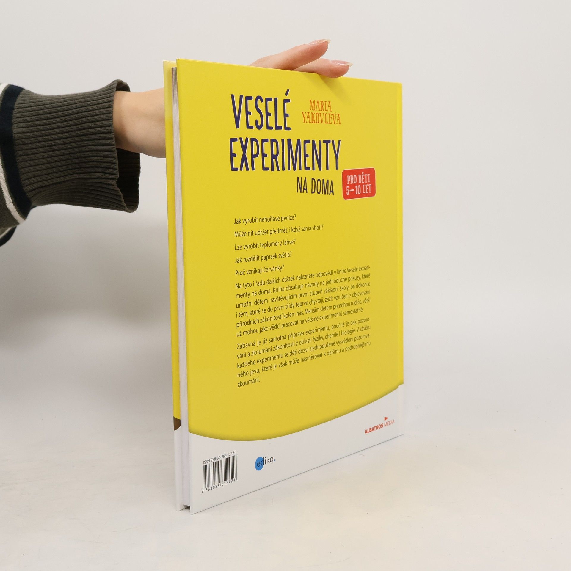 Jak vyrobit nehořlavé peníze? Může nit udržet předmět, i když sama shoří? Lze vyrobit teploměr z lahve? Jak rozdělit paprsek světla? Proč vznikají červánky? Na tyto i řadu dalších otázek naleznete odpovědi v knize Veselé experimenty na doma. Kniha obsahuje návody na jednoduché pokusy, které umožní dětem navštěvujícím první stupeň základní školy, ba dokonce i těm, které se do první třídy teprve chystají, zažít vzrušení z objevování přírodních zákonitostí…