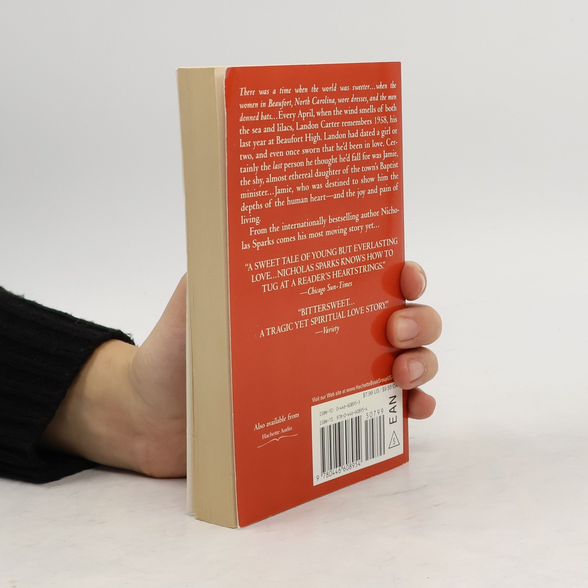 A high school rebel and a minister's daughter find strength in each other in this star-crossed tale of "young but everlasting love" (Chicago Sun-Times). There was a time when the world was sweeter....when the women in Beaufort, North Carolina, wore dresses, and the men donned hats.... Every April, when the wind smells of both the sea and lilacs, Landon Carter remembers 1958, his last year at Beaufort High. Landon had dated a girl or two, and even once sworn that he'd been in love. Certainly the last person he thought he'd fall for was Jamie, the shy, almost ethereal daughter of the town's Baptist minister....Jamie, who was destined to show him the depths of the human heart-and the joy and pain of living. The inspiration for this novel came from Nicholas Sparks's sister: her life and her courage. From the internationally bestselling author Nicholas Sparks, comes his most moving story yet....