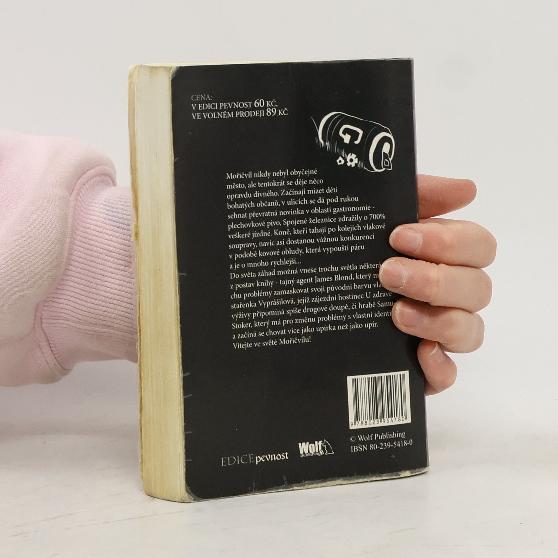 Mořičvíl nikdy nebylo obyčejné město, ale tentokrát se děje něco opravdu divného. Začínají mizet děti bohatých občanů, v ulicích se dá pod rukou sehnat převratná novinka v oblasti gastronomie - plechovkové pivo, Spojené železnice zdražily o 700% veškeré jízdné. Koně, kteří tahají po kolejích vlakové soupravy, navíc asi dostanou vážnou konkurenci v podobě kovové obludy, která vypouští páru a je o mnoho rychlejší... Do světla záhad možná vnese trochu světla některá z postav knihy - tajný agent James Blond, který má trochu problémy zamaskovat svoji původní barvu vlasů, stařenka Vyprášilová, jejíž zájezdní hostinec U Zdravé výživy připomíná spíš drogové doupě, hrabě Samuel Stoker, který má pro změnu problémy s vlastní identitou a začíná se chovat více jako upírka, než jako upír. Vítejte do světa Mořičvílu!