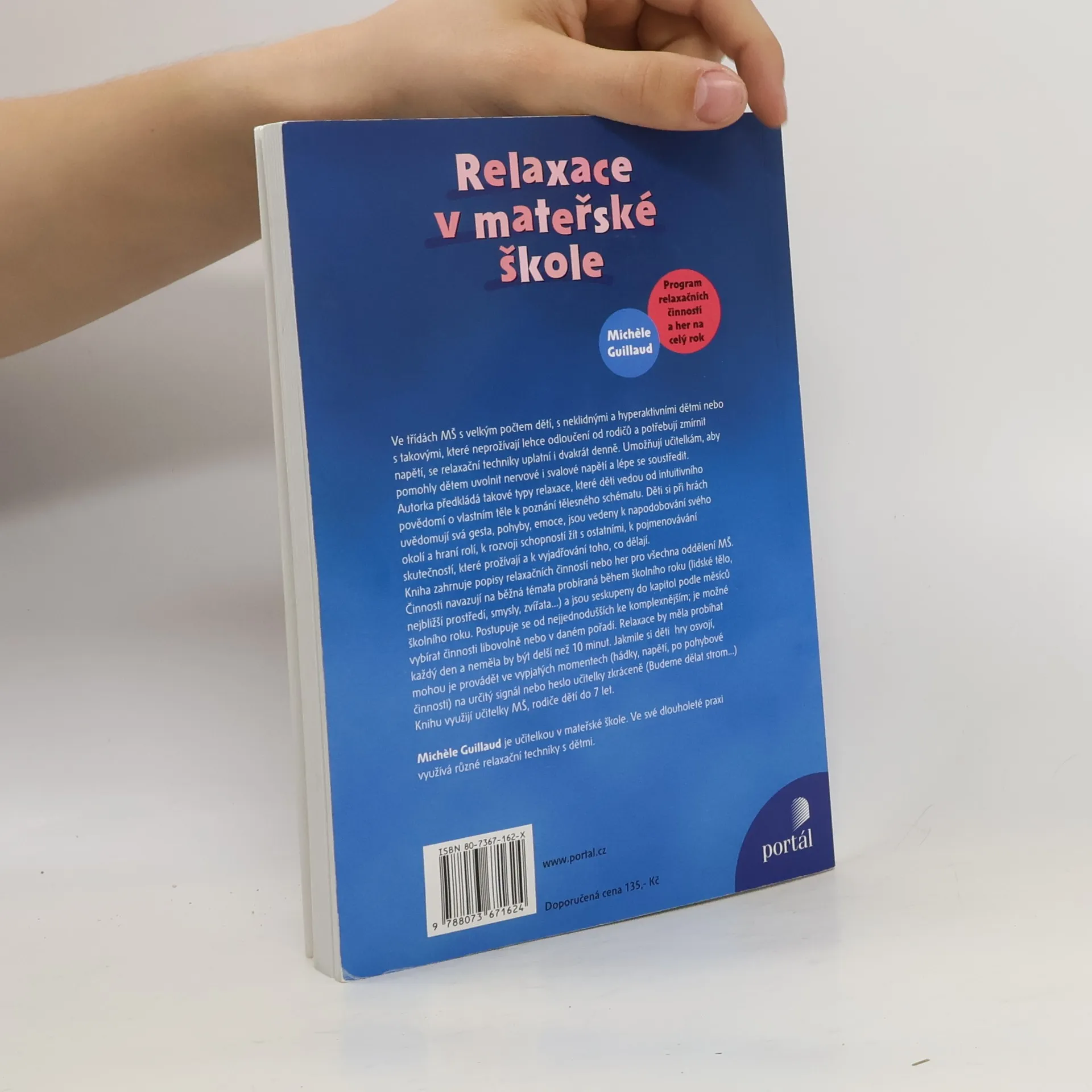 Relaxační techniky se uplatní především ve třídách s velkým počtem dětí, s neposednými a hyperaktivními dětmi nebo s takovými, které neprožívají lehce odloučení od rodičů a potřebují proto zmírnit vnitřní neklid. Děti si při nich uvolní zejména nervové i svalové napětí a naučí se lepšímu soustředění. Autorka předkládá takové typy relaxace, které děti vedou od intuitivního povědomí o vlastním těle k jeho poznávání a ovládání. Děti si při nich uvědomují svá gesta, pohyby, emoce; při hraní různých rolí rozvíjejí svou schopnost žít s ostatními, pojmenovávat skutečnosti, které prožívají, a vyjadřovat to, co dělají. Činnosti navazují na témata probíraná během školního roku a jsou seskupeny podle jednotlivých měsíců. Relaxace by měla probíhat každý den a neměla by být delší než 10 minut. Jakmile si děti hry osvojí, mohou se jim věnovat zejména ve vypjatých momentech (hádky, napětí, neklid po pohybové činnosti). Podnětem jim pak může být už jen známý signál nebo heslo, které zavolá učitelka. Knihu využijí učitelky MŠ a všichni, kteří pracují se skupinami dětí do 7 let.