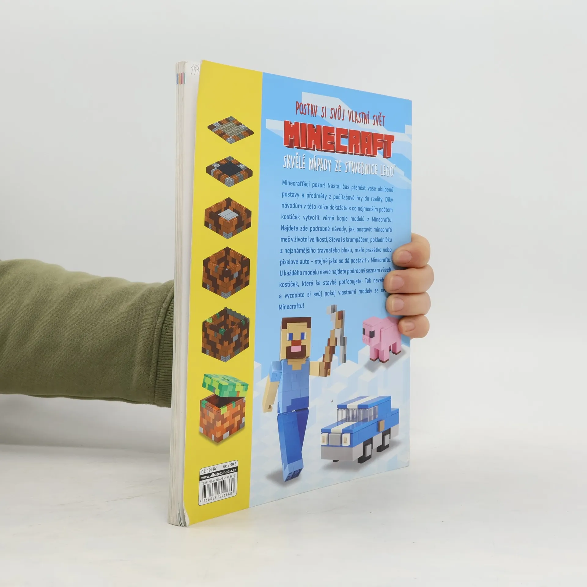Minecrafťáci pozor! Nastal čas přenést vaše oblíbené postavy a předměty z počítačové hry do reality. Díky návodům v této knize dokážete s co nejmenším počtem kostiček vytvořit věrné kopie modelů z Minecraftu. Najdete zde podrobné návody, jak postavit minecraftí meč v životní velikosti, Steva i s krumpáčem, pokladničku z nejznámějšího travnatého bloku či malé prasátko.