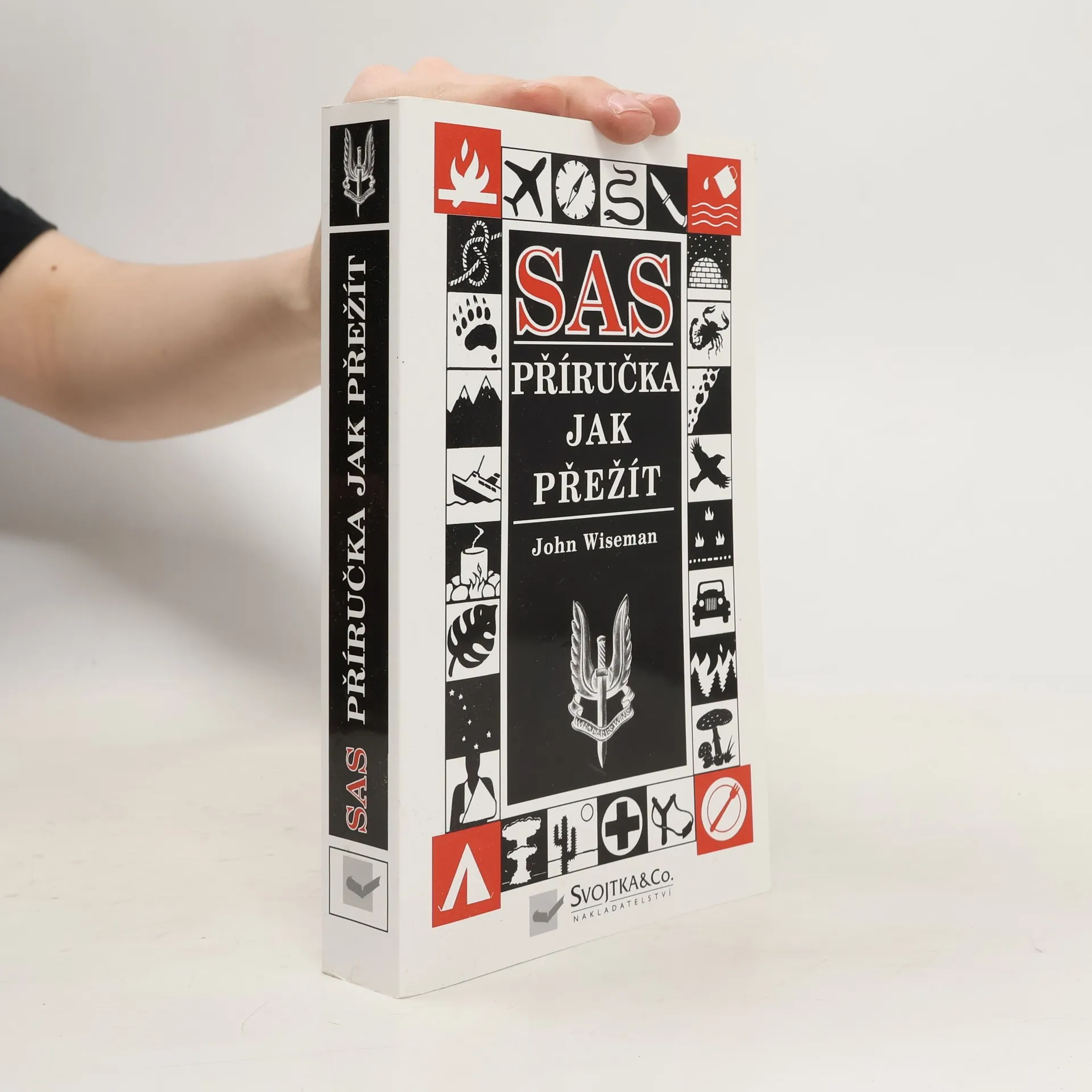 Tato publikace vám umožní zvládnout jakoukoli situaci tak jako speciálně vycvičení vojáci jednotek SAS. Obsahuje rady z oblastí: strategie, tábornictví, výkladu map, první pomoci, předpovědi počasí, přežití na moři či při pochodu v horách a džungli. Dozvíte se nejdůležitější informace o správné výstroji, podnebných pásmech, jedlých rostlinách, zvířatech, která lze ulovit, rozdělání ohně a přípravě jídel, nebezpečných rybách, ale i o signálech a kódech či pátracích postupech. S touto knihou prostě přežijete!!!
