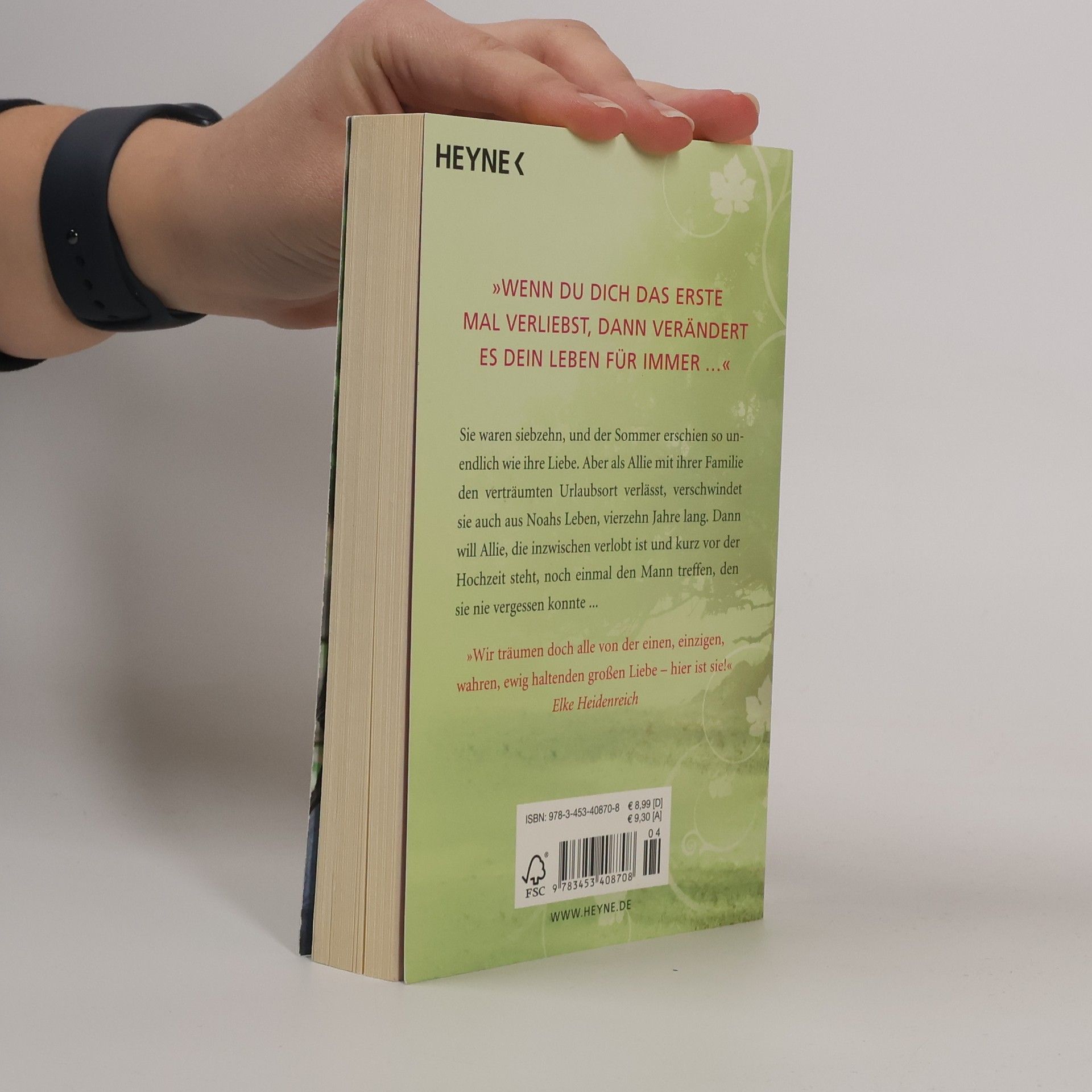 Sie sind siebzehn und verlieben sich auf den ersten Blick ineinander. Einen wunderschönen, scheinbar endlosen Sommer haben Allie und Noah gemeinsam. Dann muss Allie mit ihrer Familie den verträumten Urlaubsort verlassen - und verschwindet aus Noahs Leben. Vierzehn Jahre lang hört er nichts mehr von ihr. Und obwohl er sie verloren geben muss, kann er sich doch nie mehr neu binden. Bis Ally eines Tages plötzlich wieder vor ihm steht: Sie ist mit einem erfolgreichen Anwalt verlobt, aber bevor es zur Hochzeit kommt, will sie noch einmal den Mann sehen, den sie nie vergessen konnte ...