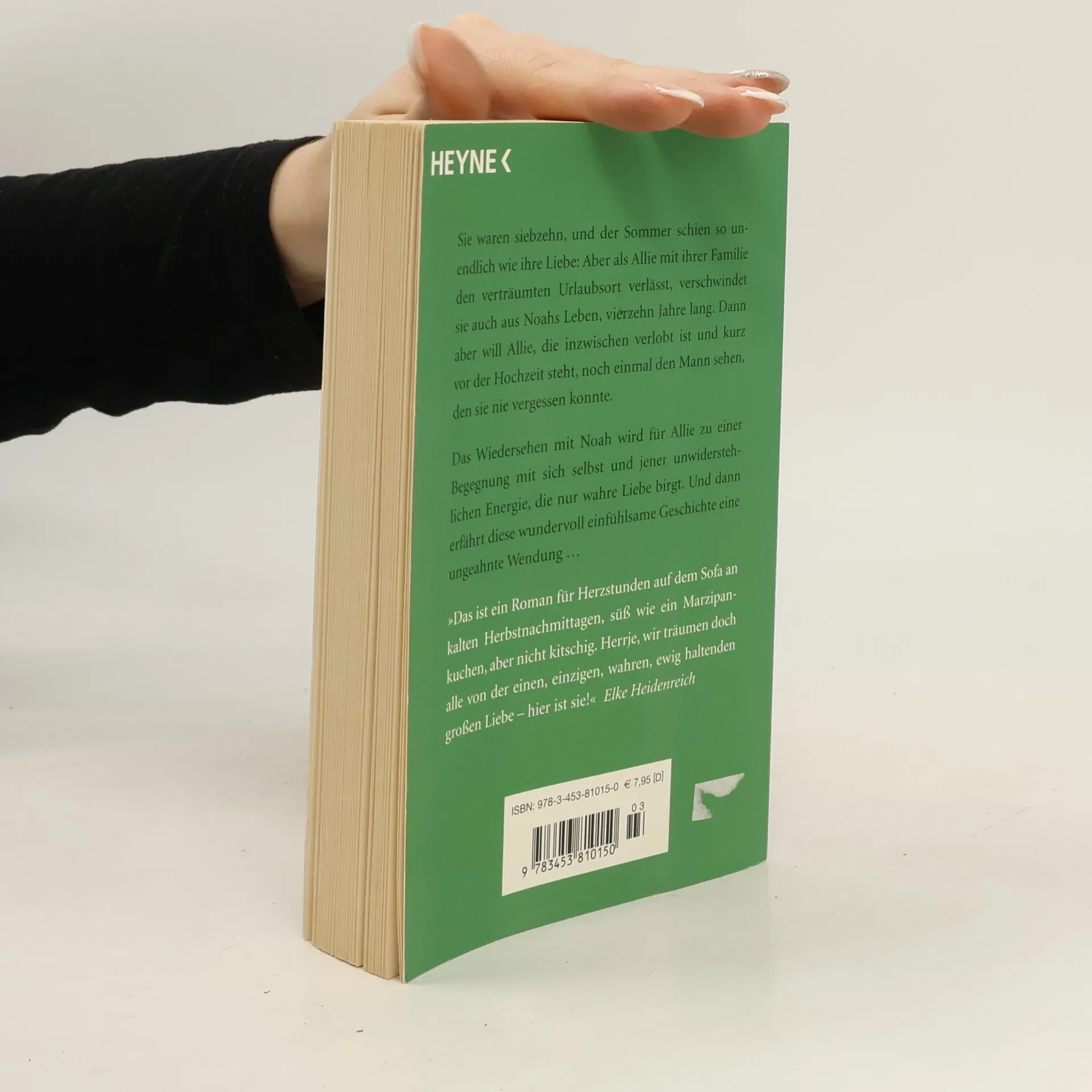 Sie sind siebzehn und verlieben sich auf den ersten Blick ineinander. Einen wunderschönen, scheinbar endlosen Sommer haben Allie und Noah gemeinsam. Dann muss Allie mit ihrer Familie den verträumten Urlaubsort verlassen - und verschwindet aus Noahs Leben. Vierzehn Jahre lang hört er nichts mehr von ihr. Und obwohl er sie verloren geben muss, kann er sich doch nie mehr neu binden. Bis Ally eines Tages plötzlich wieder vor ihm steht: Sie ist mit einem erfolgreichen Anwalt verlobt, aber bevor es zur Hochzeit kommt, will sie noch einmal den Mann sehen, den sie nie vergessen konnte ...