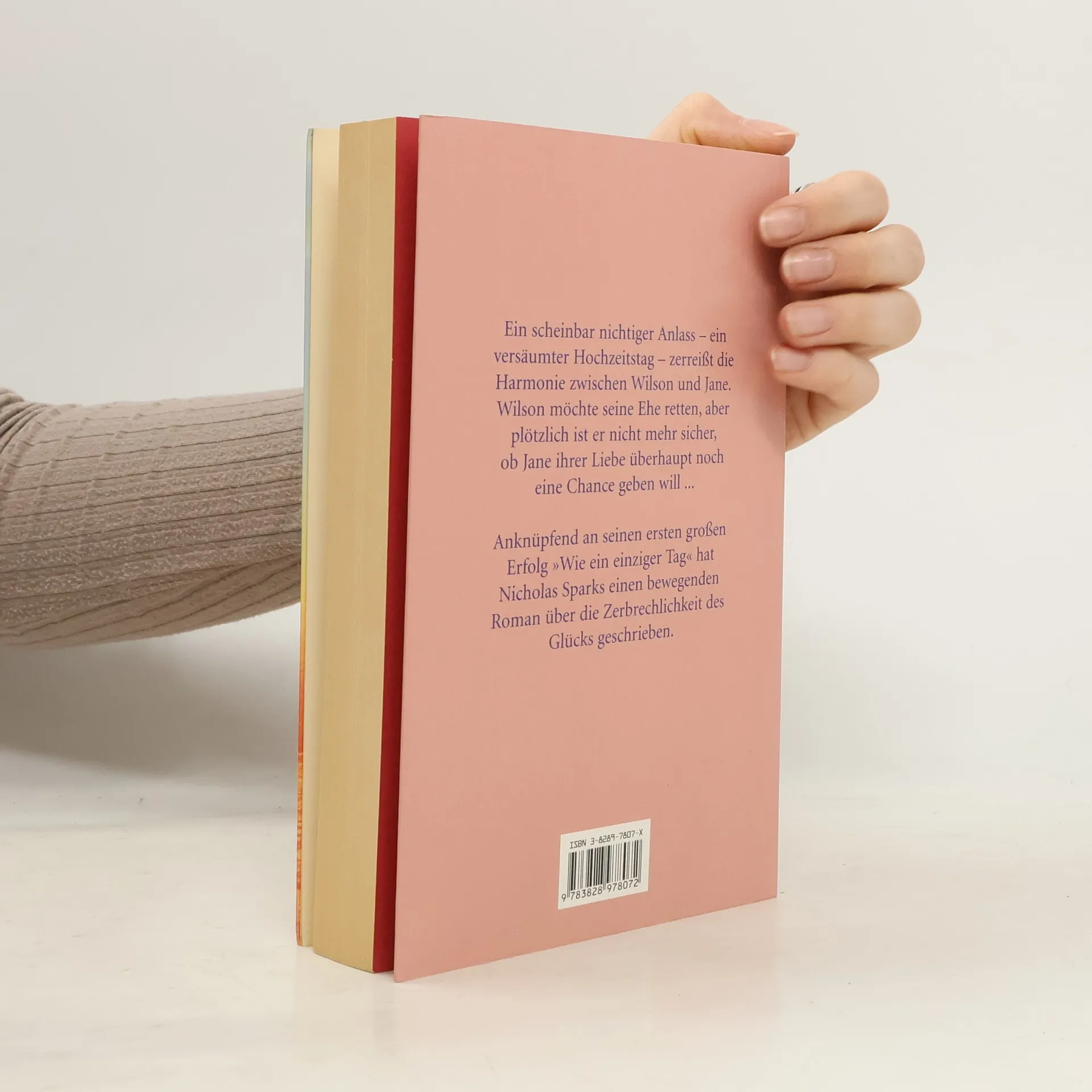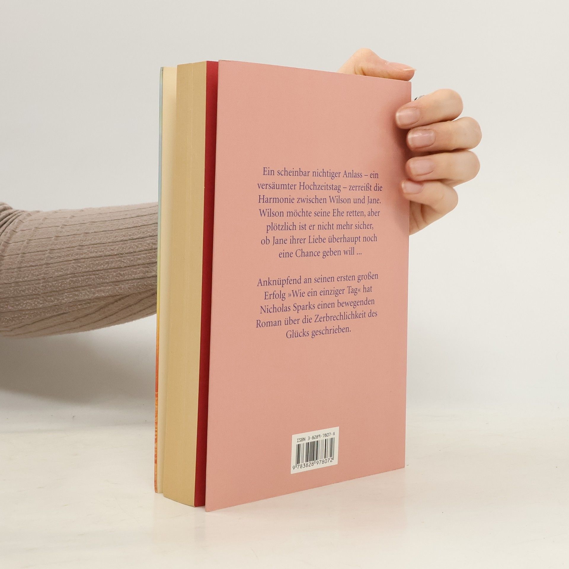 Ein scheinbar nichtiger Anlass – ein versäumter Hochzeitstag – zerreißt die Harmonie zwischen Wilson und Jane. Wilson will seine Ehe retten, aber plötzlich ist er nicht mehr sicher, ob Jane ihrer Liebe überhaupt noch eine Chance gibt. Anknüpfend an seinen ersten großen Erfolg „Wie ein einziger Tag“ hat Bestsellerautor Nicholas Sparks einen bewegenden Roman über die Kraft der Liebe und die Zerbrechlichkeit des Glücks geschrieben.