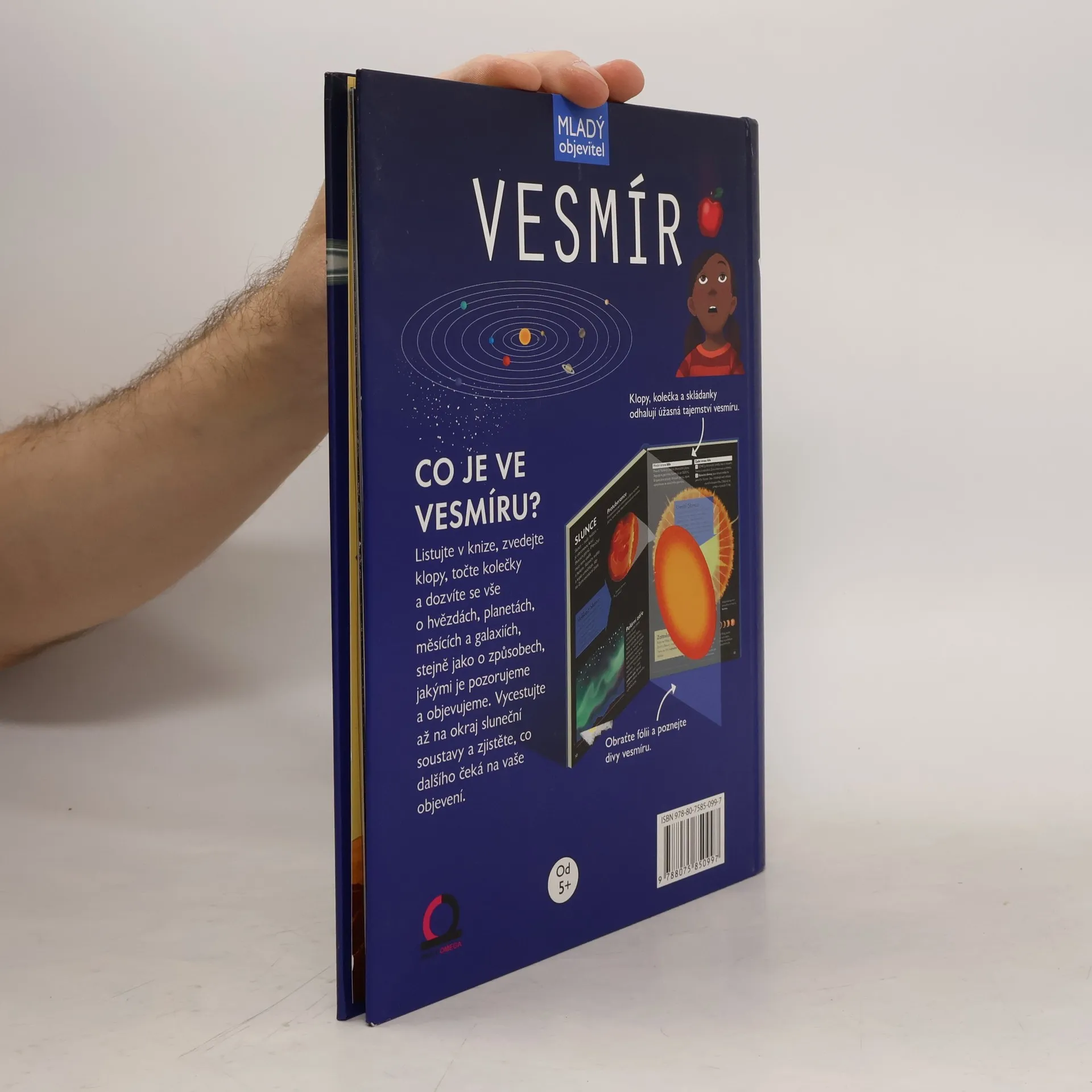 Kniha pro děti do 10 let, které zajímají hvězdy, komety, mlhoviny a další tajemství vesmíru. Názorně vysvětluje jedinečnou metodu fóliových obrázků, umožňujících průhledy do jednotlivých vrstev Slunce, Země a planet. Odhaluje život a práci astronautů, fungování vesmírných lodí, družic a sond. Obsahuje i slovníček pojmů a přehled zajímavostí.