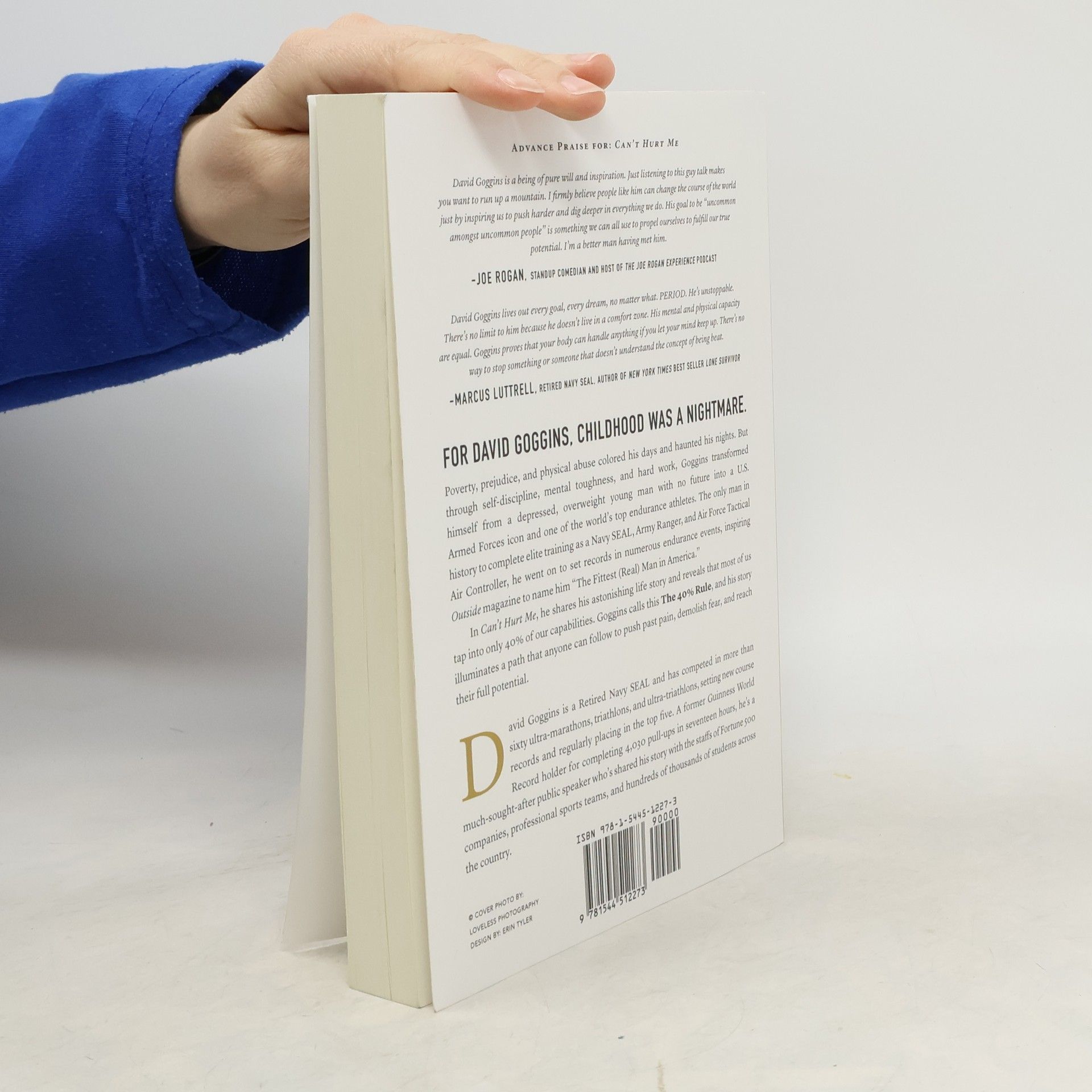 For David Goggins, childhood was a nightmare -- poverty, prejudice, and physical abuse colored his days and haunted his nights. But through self-discipline, mental toughness, and hard work, Goggins transformed himself from a depressed, overweight young man with no future into a U.S. Armed Forces icon and one of the world's top endurance athletes. The only man in history to complete elite training as a Navy SEAL, Army Ranger, and Air Force Tactical Air Controller, he went on to set records in numerous endurance events, inspiring Outside magazine to name him "The Fittest (Real) Man in America." In Can't Hurt Me, he shares his astonishing life story and reveals that most of us tap into only 40% of our capabilities. Goggins calls this The 40% Rule, and his story illuminates a path that anyone can follow to push past pain, demolish fear, and reach their full potential.