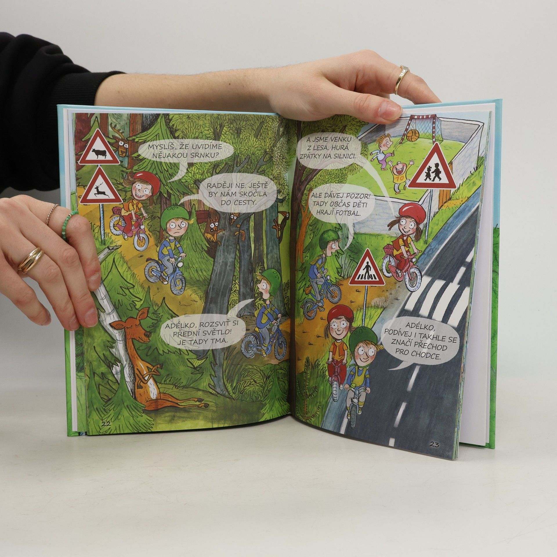Martínek dostane k narozeninám úplně nové kolo a rozhodne se, že spolu se svou kamarádkou Adélkou vyjede na výlet. Komiksový příběh je zábavný a hlavně poučný. Dvojice kamarádů se na cestě za dobrodružstvím totiž dostává do různých dopravních situací od divoké dopravy ve městě, až po klidné lesní stezky. Spolu s Martínkem a Adélkou se děti seznámí s nejznámějšími dopravními značkami. Součástí jsou omalovánky a další aktivity pro děti. V knize si tak mohou díky velmi detailním ilustracím listovat děti jak samy, tak i společně s rodiči. Kouzelné, celostránkové obrázky dětem namalovala Alena Schulze.