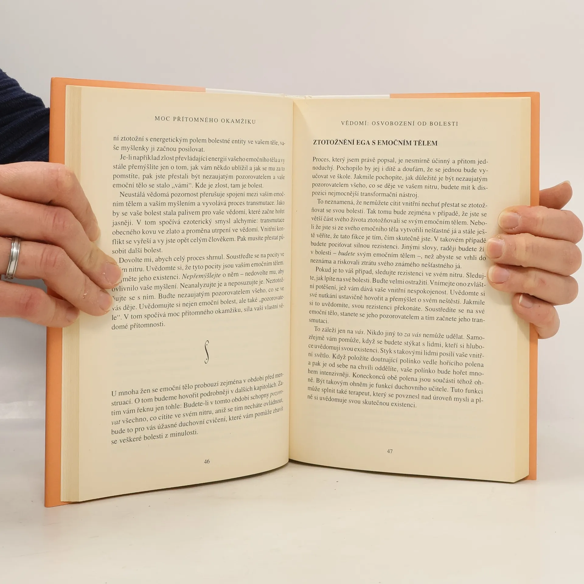Při čtení této knihy mnoho z nás učiní nové objevy: nejsme svou myslí; můžeme se zbavit duševní bolesti; najdeme, jakmile se vzdáme přítomnému okamžiku. Dovíme se také, že jedním z klíčů k dosažení vnitřního klidu je naše tělo, stejně jako ticho a prostor kolem nás. To jsou brány, jimiž můžeme vstoupit do přítomnosti, kde neexistují žádné problémy. V přítomném okamžiku najdeme své skutečné já a hlubokou vnitřní radost. Pouze v přítomném okamžiku si uvědomíme, že už jsme úplní a dokonalí. Mnoho z nás zjistí, že naší největší překážkou na cestě k tomuto poznání jsou naše partnerské vztahy. Vstupujeme do ,,nového teritoria" a nic není takové, jak se nám to dosud jevilo. Pochopíme, že naše partnerské vztahy mohou být další branou k duchovnímu osvícení, pokud jich budeme užívat moudře, to jest k tomu, abychom se stali víc milujícími. Výsledek? Skutečné spojení mezi naším já a druhými lidmi. Naučíme-li se žít v přítomném okamžiku, budeme-li vnímat realitu ,,neviditelného Bytí" a svého ,,vnitřního těla", otevřeme se transformujícímu poznání, jež nám poskytuje tato kniha.