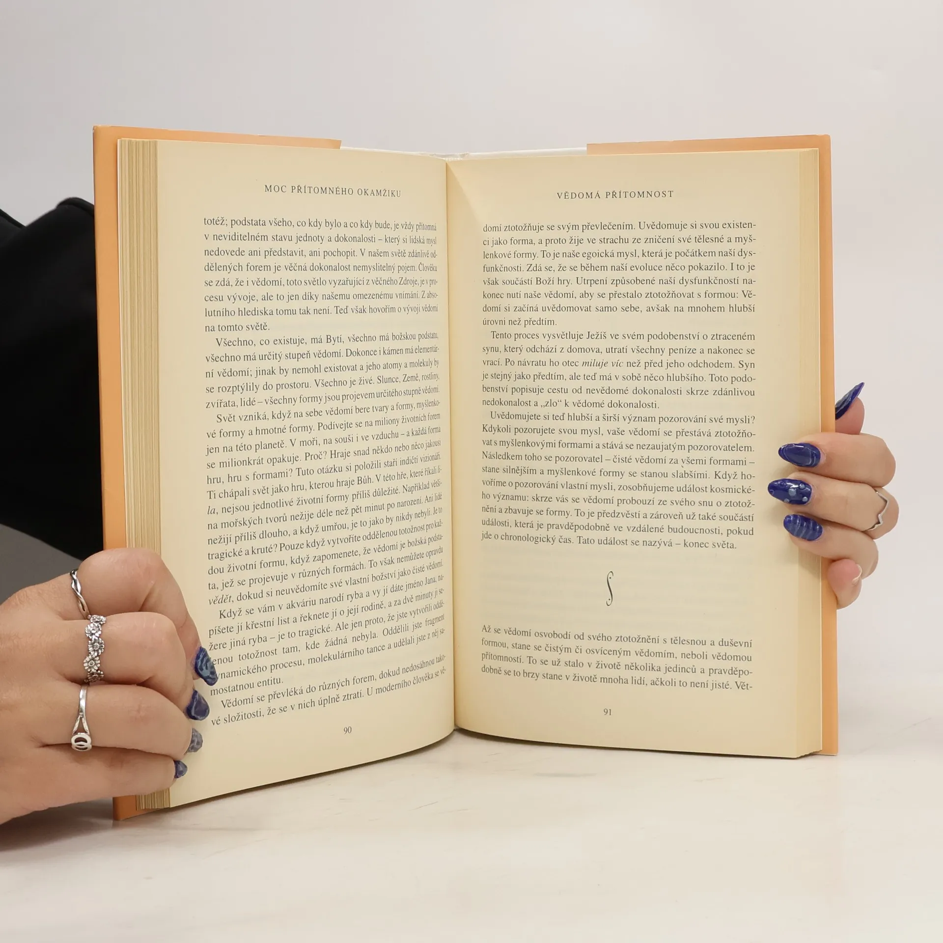 Při čtení této knihy mnoho z nás učiní nové objevy: nejsme svou myslí; můžeme se zbavit duševní bolesti; najdeme, jakmile se vzdáme přítomnému okamžiku. Dovíme se také, že jedním z klíčů k dosažení vnitřního klidu je naše tělo, stejně jako ticho a prostor kolem nás. To jsou brány, jimiž můžeme vstoupit do přítomnosti, kde neexistují žádné problémy. V přítomném okamžiku najdeme své skutečné já a hlubokou vnitřní radost. Pouze v přítomném okamžiku si uvědomíme, že už jsme úplní a dokonalí. Mnoho z nás zjistí, že naší největší překážkou na cestě k tomuto poznání jsou naše partnerské vztahy. Vstupujeme do ,,nového teritoria" a nic není takové, jak se nám to dosud jevilo. Pochopíme, že naše partnerské vztahy mohou být další branou k duchovnímu osvícení, pokud jich budeme užívat moudře, to jest k tomu, abychom se stali víc milujícími. Výsledek? Skutečné spojení mezi naším já a druhými lidmi. Naučíme-li se žít v přítomném okamžiku, budeme-li vnímat realitu ,,neviditelného Bytí" a svého ,,vnitřního těla", otevřeme se transformujícímu poznání, jež nám poskytuje tato kniha.