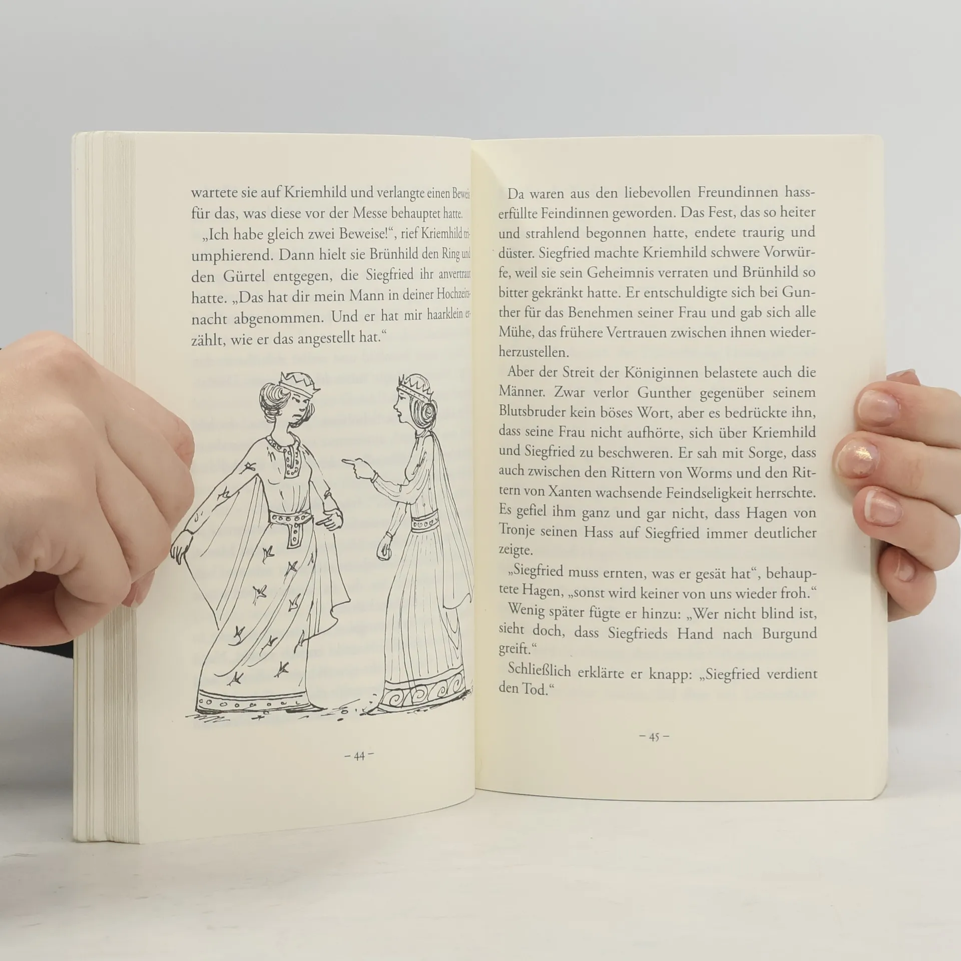 Die schöne Kriemhild wird von Siegfried dem Drachentöter gefreit. Dieser soll sie auch zur Frau bekommen, allerdings muss er vorher ihrem Bruder Gunther helfen, die Hand der starken Königin Brünhild zu gewinnen. Siegfried steht seinem Blutsbruder mit Zaubermacht zur Seite, sod Gunther Brünhild schließlich heiraten kann. Doch die Doppelhochzeit in Worms ist nicht das Happy End, sondern der Anfang einer packenden Geschichte von kühnen Helden und schönen Frauen, von Drachenblut und Waffenklang, von Treue und Verrat, von Liebe und Tod.Ingrid Uebe hat das mittelalterliche Epos in ihrer Nacherzählung auf wesentliche Pagen gestrafft. Sie erzählt die Geschichte für Schüler verständlich, behält aber den mittelalterlichen Tonfall behutsam bei. Ihr gelingt es, die Kampfszenen weniger blutig als im Original darzustellen, ohne das grausame Geschehen zu verharmlosen. So ist ein spannender und abwechslungsreicher Roman entstanden, der Schüler ab der 5. Kle in eine sagenhafte Welt entführt und zugleich grundlegende Fragen der menschlichen Existenz behandelt.