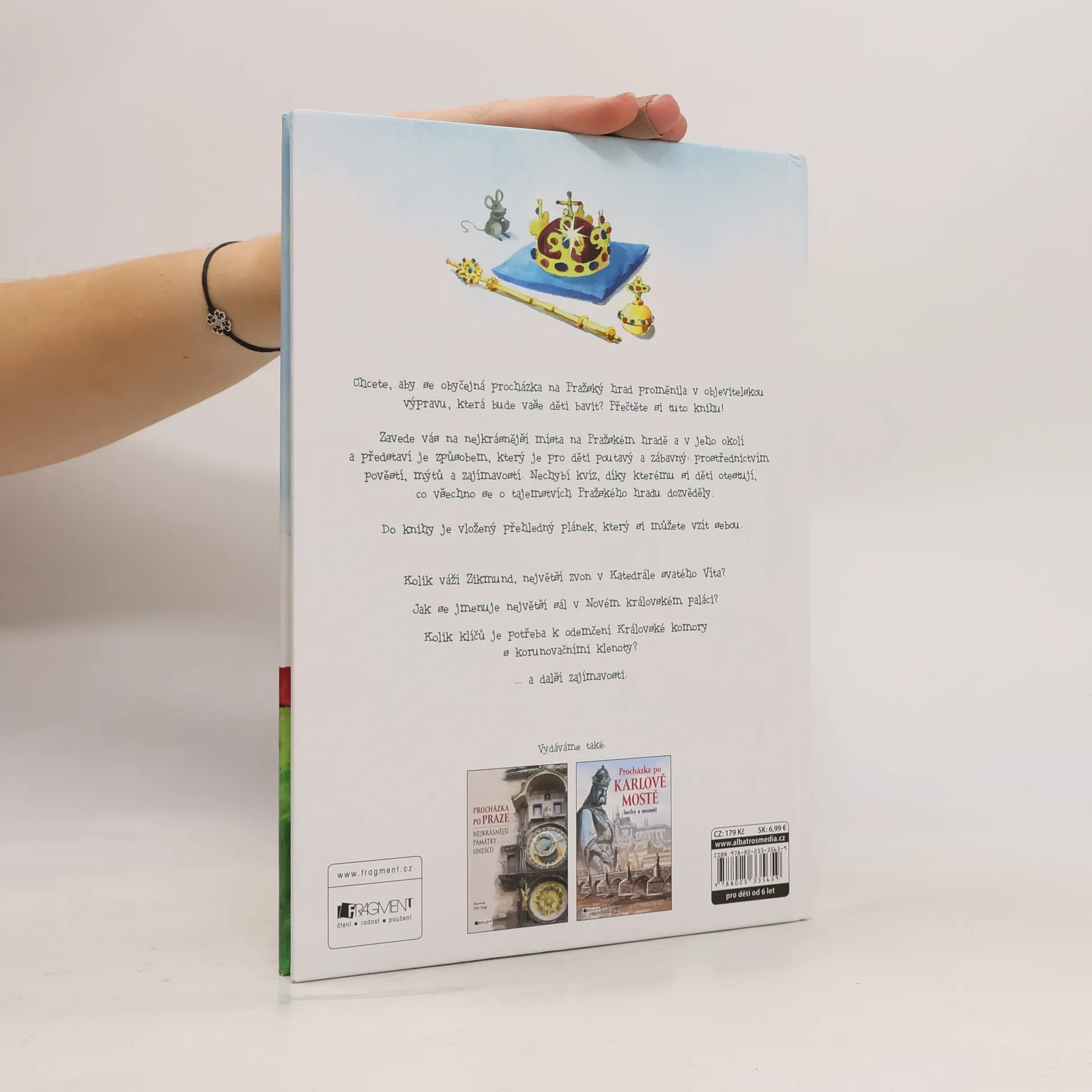 Chcete, aby se obyčejná procházka na Pražský hrad proměnila v objevitelskou výpravu, která bude vaše děti bavit? Přečtěte si tuto knihu! Zavede vás na nejkrásnější místa na Pražském hradě a v jeho okolí a představí je způsobem, který je pro děti poutavý a zábavný: prostřednictvím pověstí, mýtů a zajímavostí. Nechybí kvíz, díky kterému si děti otestují, co všechno se o tajemstvích Pražského hradu dozvěděly. Do knihy je vložený přehledný plánek, který si můžete vzít sebou. Kolik váží Zikmund, největší zvon v Katedrále svatého Víta? Jak se jmenuje největší sál v Novém královském paláci? Kolik klíčů je potřeba k odemčení Královské komory s korunovačními klenoty? ... a další zajímavosti