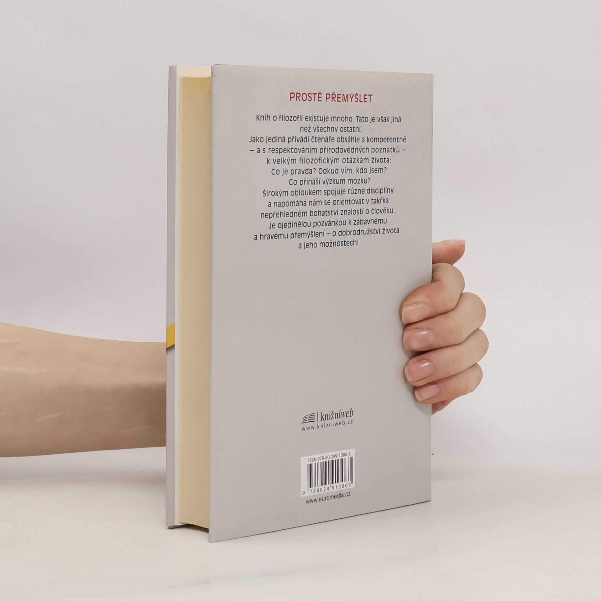 Filozofické putování. Knih o filozofii existuje mnoho. Tato je však jiná než všechny ostatní. Jako jediná přivádí čtenáře obsáhle a kompetentně -- a s respektováním přírodovědných poznatků – k velkým filozofickým otázkám života: Co je pravda? Odkud vím, kdo jsem? Co přináší výzkum mozku? Širokým obloukem spojuje různé disciplíny a napomáhá nám se orientovat v takřka nepřehledném bohatství znalostí o člověku. Je ojedinělou pozvánkou k zábavnému a hravému přemýšlení -- o dobrodružství života a jeho možnostech!