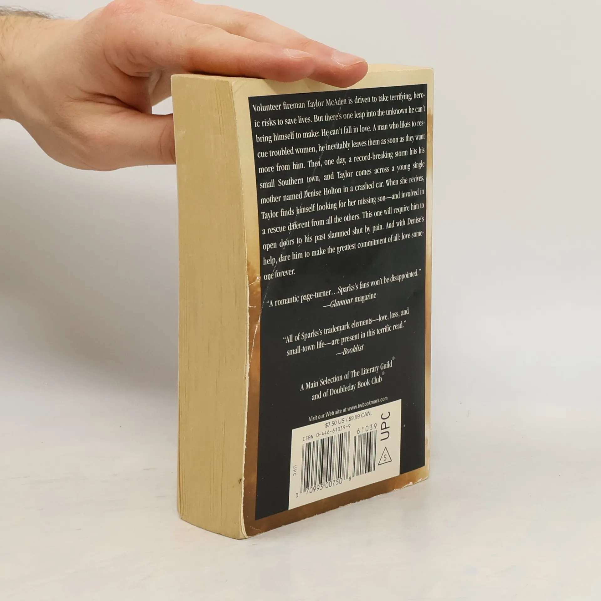 How do you learn to trust again? Denise Hilton, a young single mother, is driving through Edenton, North Carolina, when her car skids off the road during a storm. With her is her four-year-old son, Kyle, a boy with severe learning disabilities for whom she has sacrificed everything. When volunteer fireman Taylor McAden finds her she is unconscious and bleeding, but when she wakes an even more chilling truth becomes clear: Kyle is gone. When confronted by raging fires or deadly accidents, Taylor feels compelled to take terrifying risks to save lives, and the search for Kyle is no exception. But there is one leap of faith Taylor cannot bring himself to make - to commit to a relationship. Will this chance meeting with Denise prove any different?