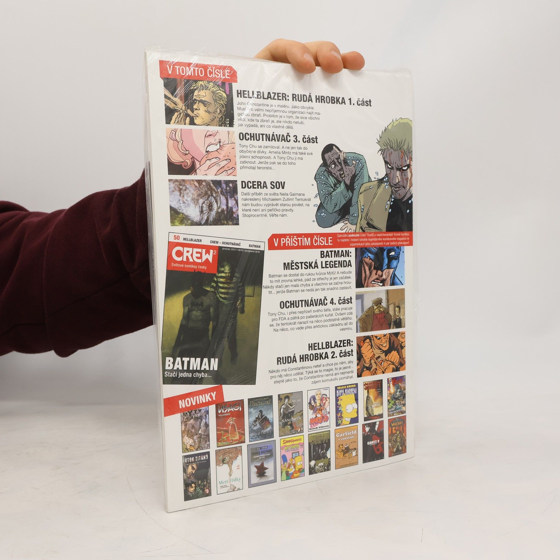 HELLBLAZER: RUDÁ HROBKA 1. John Constantine je v maléru. Jako obvykle. Musí pro velmi nepříjemnou organizaci najít magickou zbraň. Problém je v tom, že sice všichni vědí, kde ta zbraň je, ale nikdo netuší, jak vypadá, ani co vlastně dělá. OCHUTNÁVAČ 3. část Tony Chu se zamiloval. A ne jen tak do obyčejné dívky. Amelia Mintz má také své jídelní schopnosti. A Tony Chu ji má zatknout. Jenže pak se do toho přimotají teroristé... DCERA SOV Další příběh ze světa Neila Gaimana nakreslený Michaelem Zullim! Tentokrát nám budou vyprávět starou pověst, na které není ani peříčko pravdy. Stoprocentně. Věřte nám.