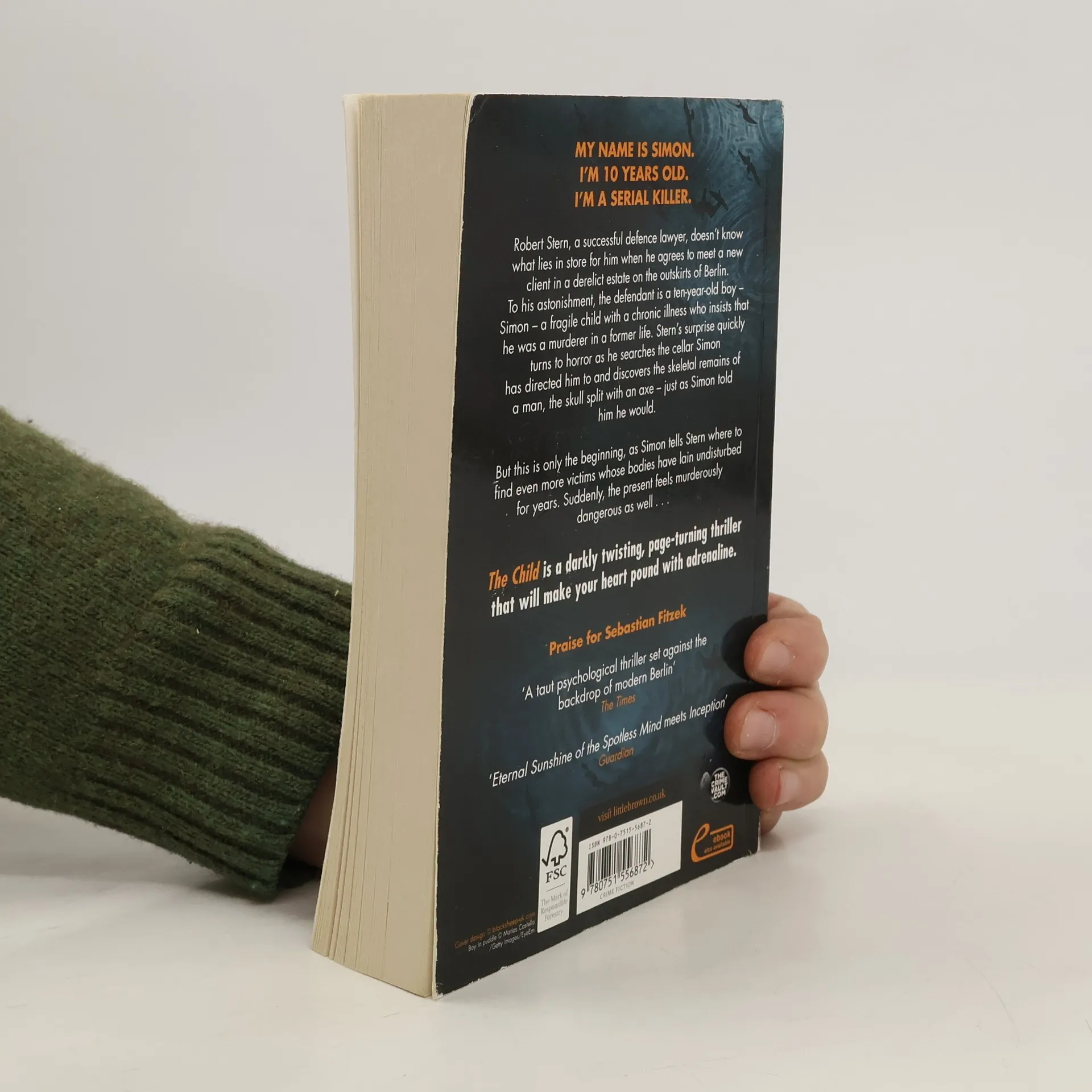 My name is Simon. I'm 10 years old. I'm a serial killer. Robert Stern, a successful defence lawyer, doesn't know what lies in store for him when he agrees to meet a new client in a derelict estate on the outskirts of Berlin. To his astonishment, the defendant is a ten-year-old boy - Simon - a fragile child with a chronic illness who insists that he was a murderer in a former life. Stern's surprise quickly turns to horror as he searches the cellar Simon has directed him to and discovers the skeletal remains of a man, the skull split with an axe - just as Simon told him he would. But this is only the beginning, as Simon tells Stern where to find even more victims whose bodies have lain undisturbed for years. Suddenly, the present feels murderously dangerous as well...The Child is a darkly twisting, page-turning thriller that will make your heart pound with adrenaline.