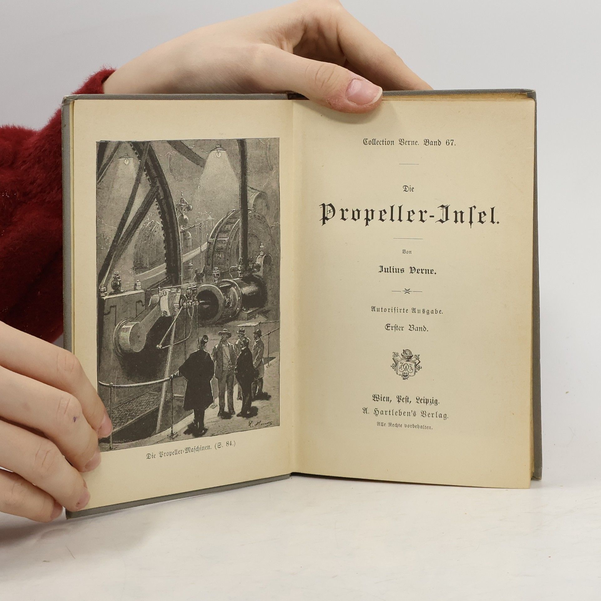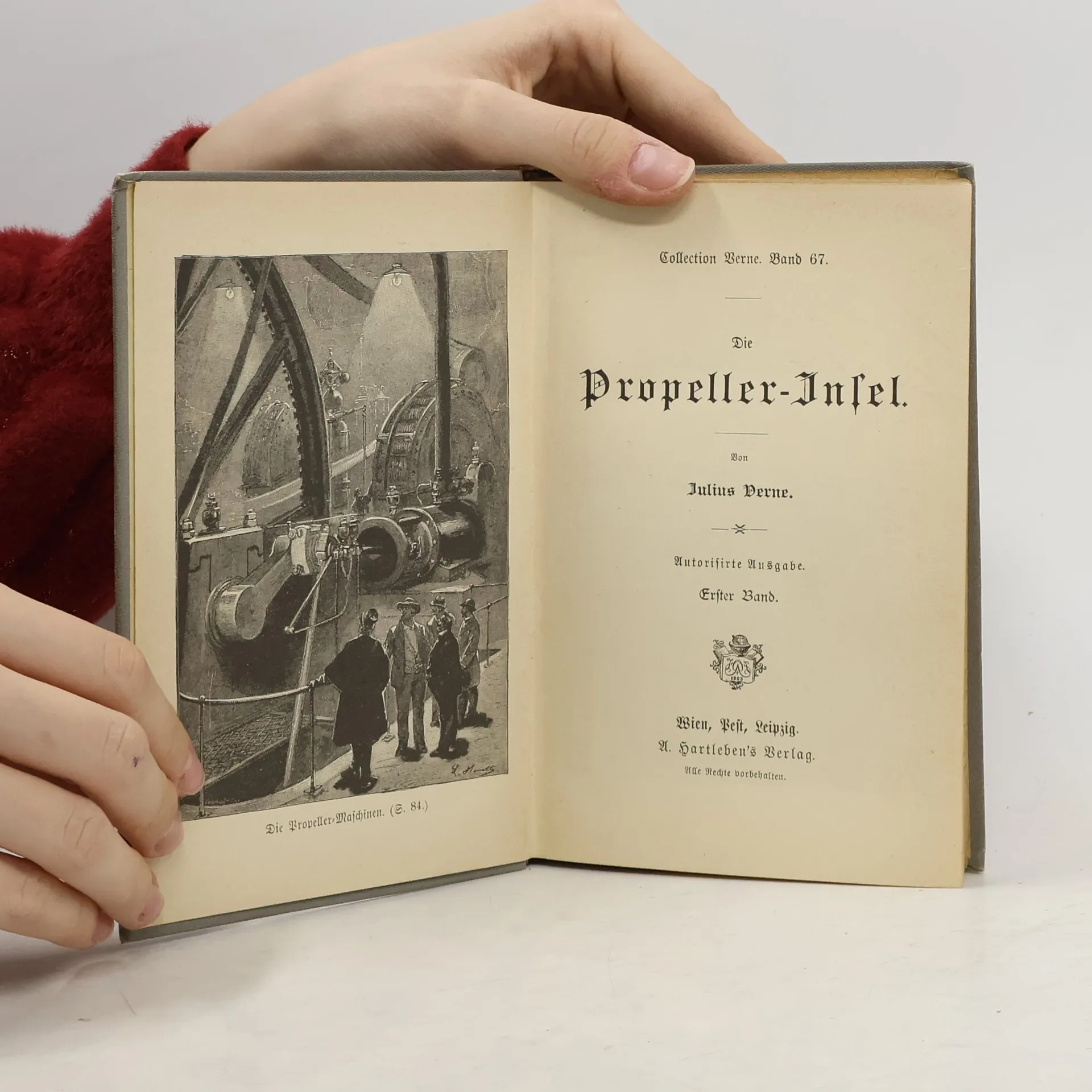 Jules Verne: Die Propeller-Insel L'ILE À HÉLICE (entstanden 1893). Frz. Vorabdruck: Magasin d'Education et de Récréation 1.1.-15.12.1895. Frz. Buch-Erstausgabe: J. Hetzel, Paris 1895. Dt. Buch-Erstausgabe: A. Hartleben, Wien Pest Leipzig o. J., ausgeliefert Dezember 1895. Vollständige Neuausgabe. Herausgegeben von Karl-Maria Guth. Berlin 2015. Textgrundlage ist die Ausgabe: Jules Verne: Die Propeller-Insel. Bekannte und unbekannte Welten. Abenteuerliche Reisen von Julius Verne, Band LXVII–LXVIII, Wien, Pest, Leipzig: A. Hartleben, 1897. Die Paginierung obiger Ausgabe wird in dieser Neuausgabe als Marginalie zeilengenau mitgeführt. Umschlaggestaltung von Thomas Schultz-Overhage unter Verwendung des Bildes: Buchillustration von Léon Benett, 1895. Gesetzt aus Minion Pro, 11 pt.