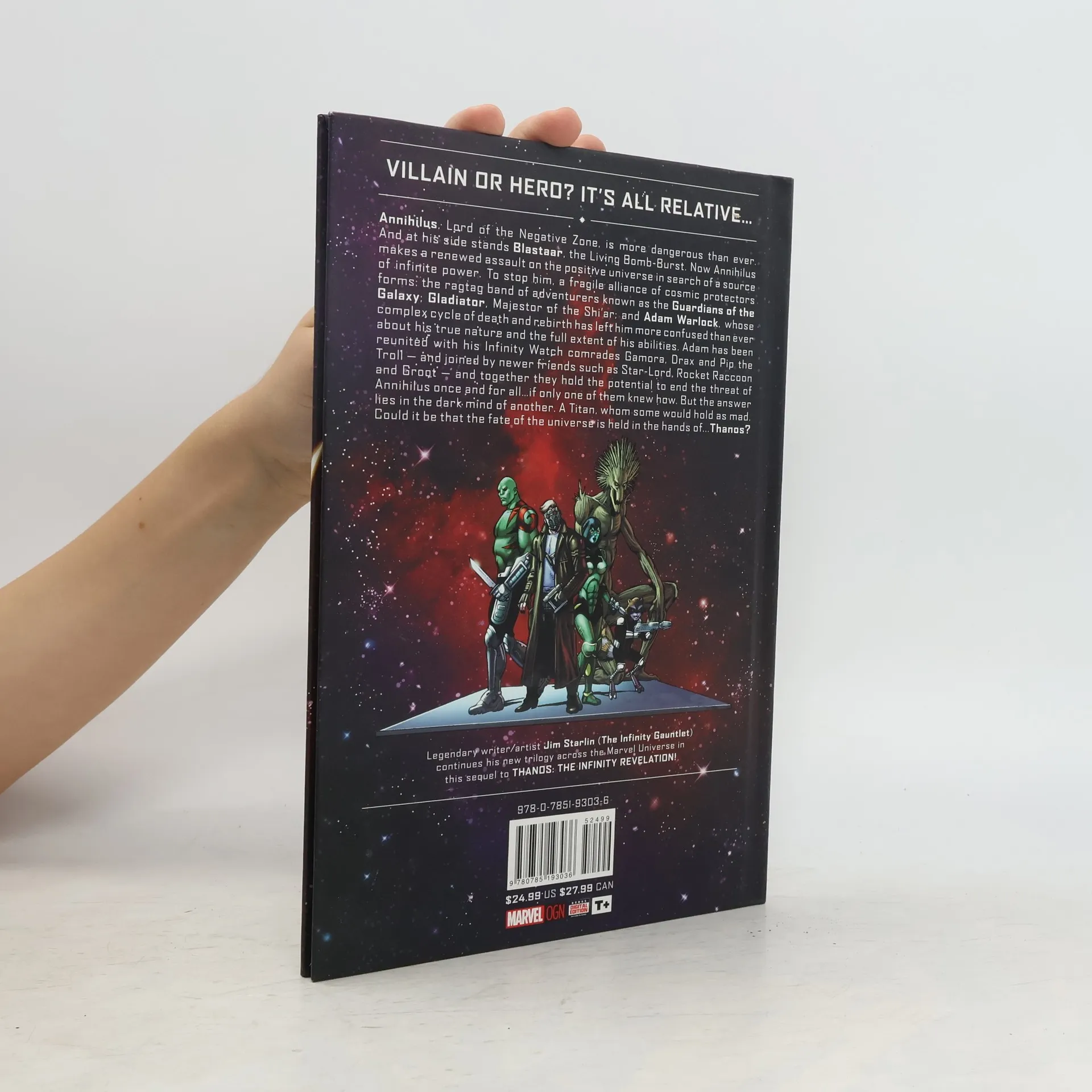 Annihilus, lord of the Negative Zone, makes a renewed assault on the positive universe, searching for a source of infinite power. To stop him, a fragile alliance of cosmic protectors forms. The Guardians of the Galaxy. Gladiator, Majestor of the Shi'ar. And Adam Warlock - whose complex cycle of death and rebirth has left him more confused than ever about his true nature. With Adam reunited with his Infinity Watch comrades Gamora, Drax and Pip the Troll - and joined by newer friends like Star-Lord, Rocket Raccoon and Groot -they hold the potential to end Annihilus' threat once and for all...if only they knew how! But the answer lies in the dark mind of another. A Titan, whom some would hold as mad. Could the fate of everything rest in the hands of...Thanos? Cosmic maestro Jim Starlin's infinite odyssey continues!