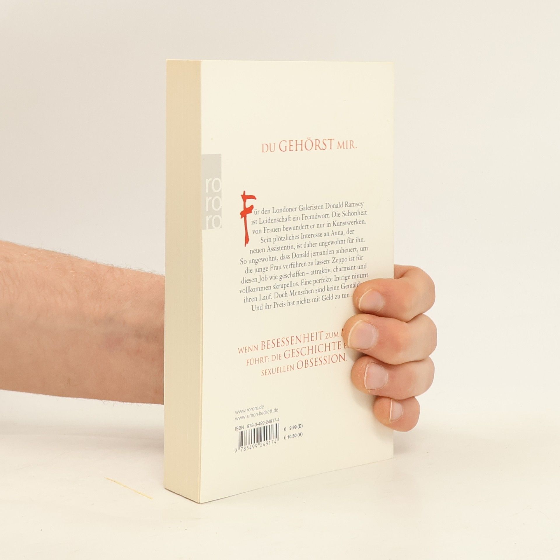 Du gehörst mir.Für den Londoner Galeristen Donald Ramsey ist Leidenschaft ein Fremdwort. Die Schönheit von Frauen bewundert er nur in Kunstwerken. Sein plötzliches Interesse an Anna, der neuen Assistentin, ist daher ungewohnt für ihn. So ungewohnt, dass Donald jemanden anheuert, um die junge Frau verführen zu lassen: Zeppo ist für diesen Job wie geschaffen – attraktiv, charmant und vollkommen skrupellos. Eine perfekte Intrige nimmt ihren Lauf. Doch Menschen sind keine Gemälde. Und ihr Preis hat nichts mit Geld zu tun.Wenn Besessenheit zum Mord führt: Die Geschichte einer sexuellen Obsession.