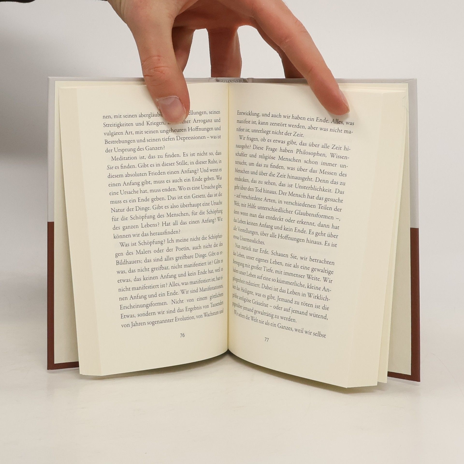 Eine kaum zu überschauende Anzahl von Büchern über Meditation vermittelt, es gehe darum, anhand von Methoden einen stillen Geist oder andere Bewusstseinszustände zu erlangen. Der große indische Weisheitslehrer J. Krishnamurti zeigt die Mängel und Fallstricke einer solchen Vorgehensweise auf. Meditation ist für ihn das Spüren und völlige Erfassen der Gesamtheit des Lebens, ohne auszuwählen. Nur das führt ohne Bemühen und innere Konflikte zu Freiheit und einer Stille des Geistes, in der sich das zeigt, was wahr ist.