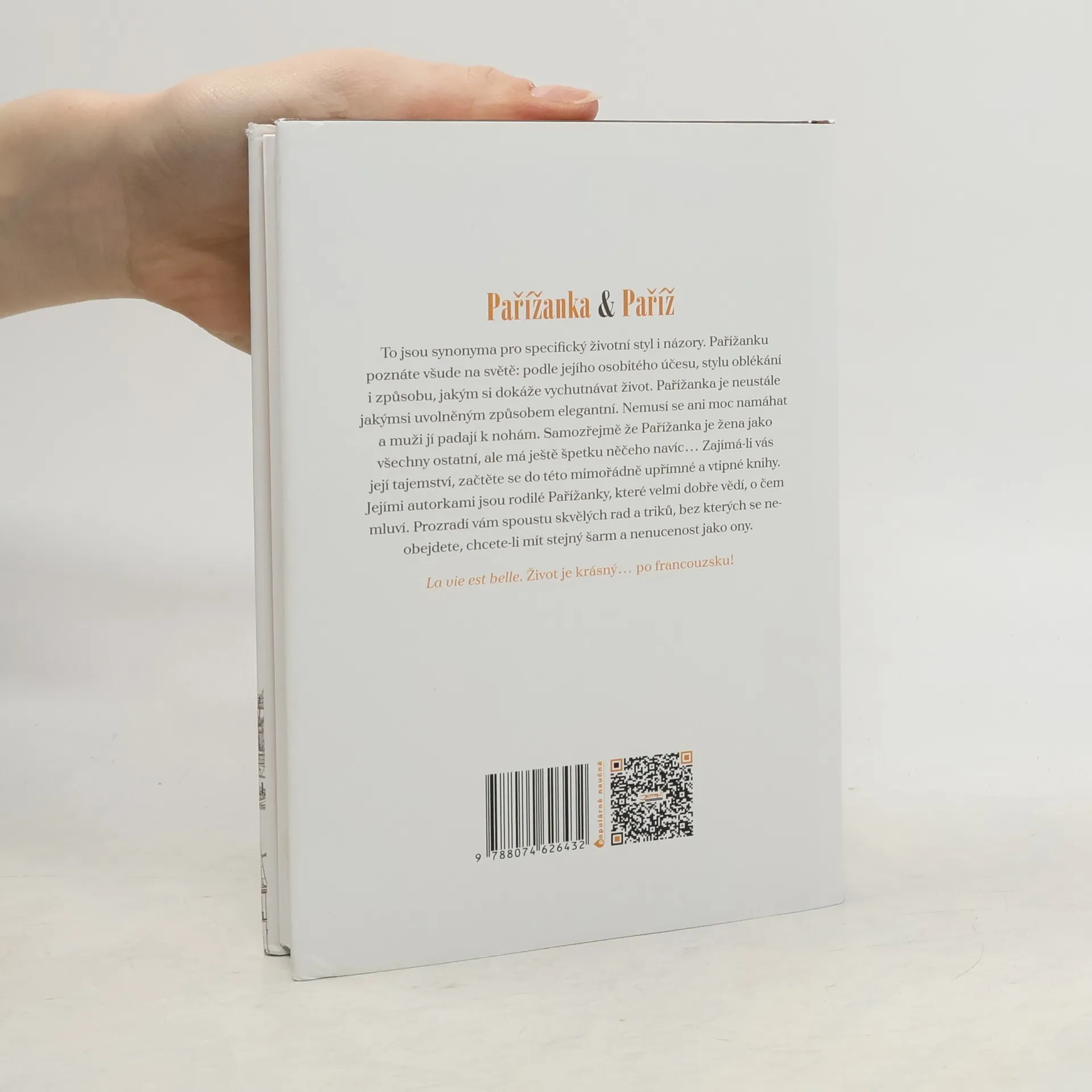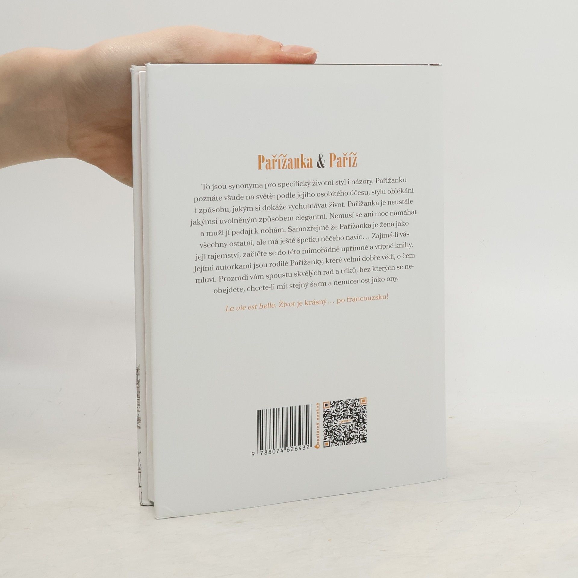 Pařížanka a Paříž. Synonyma pro specifický životní styl i názory. Pařížanku poznáte všude na světě díky jejímu osobitému šarmu a způsobu, jakým si dokáže vychutnávat život. Je neustále šik a elegantní. Nemusí se ani moc namáhat a muži jí padají k nohám. Samozřejmě že Pařížanka je žena jako všechny ostatní, ale se špetkou něčeho navíc… A pokud se chcete dozvědět i něco z jejích tajných triků, zkuste zalistovat touto knihou, která vyšla z pera skutečných rodilých Pařížanek. Život je krásný… po francouzsku!