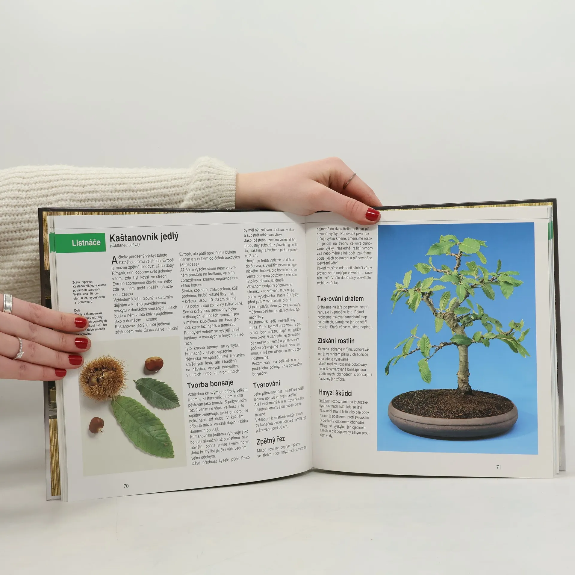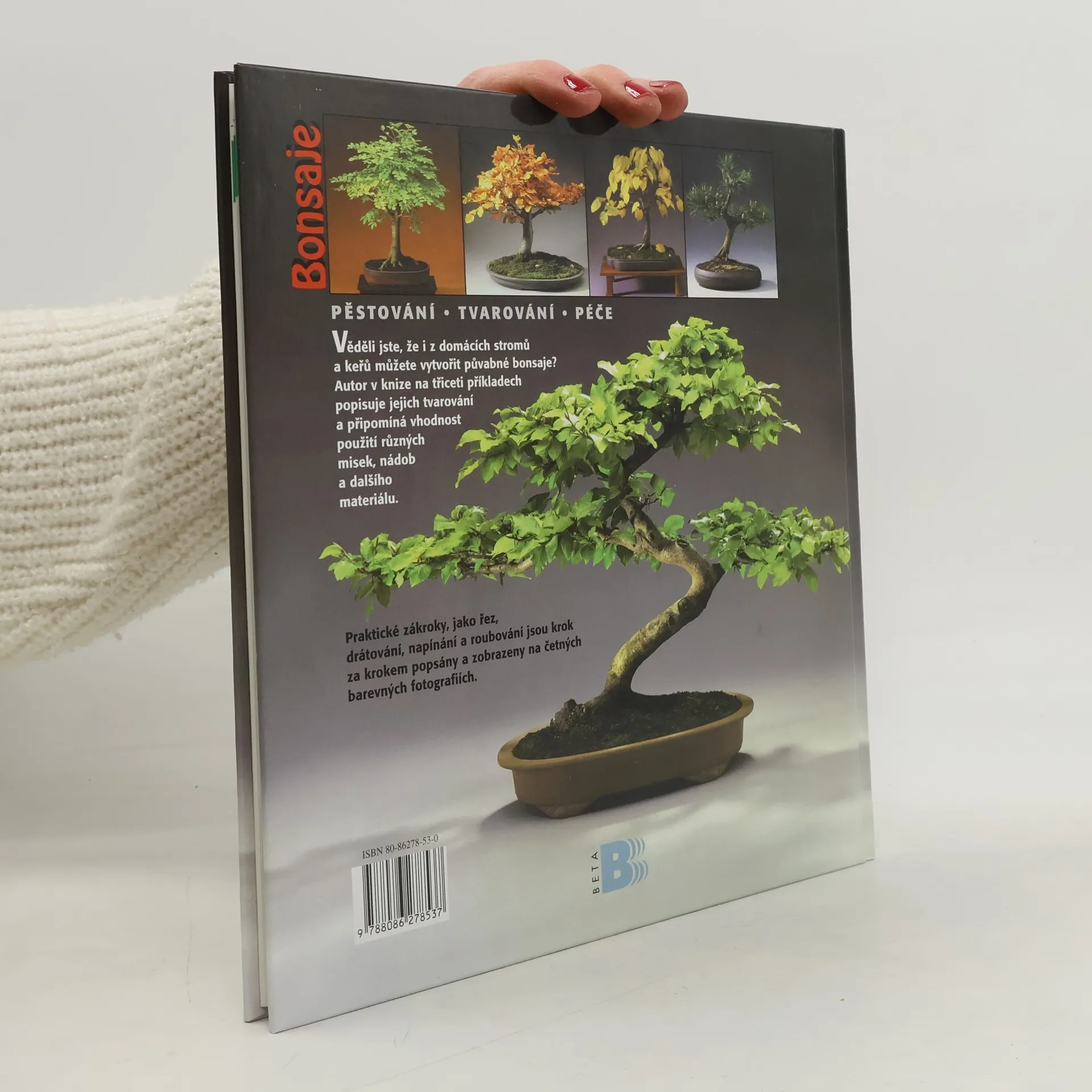 Kromě všeobecných rad, které se týkají péče a tvarování zmenšenin stromů, je pozornost věnovaná zejména popisu keřů a stromů našich zeměpisných šířek včetně informací o jejich vhodnosti pro tvarování. U každého jednotlivého druhu dřeviny (listnaté i jehličnaté) je uveden popis vzhledu, reakce na určité tvarovací techniky a způsoby možné ochrany proti škůdcům a chorobám.Publikace je určena jak začátečníkům, tak i zkušenějším pěstitelům bonsají.