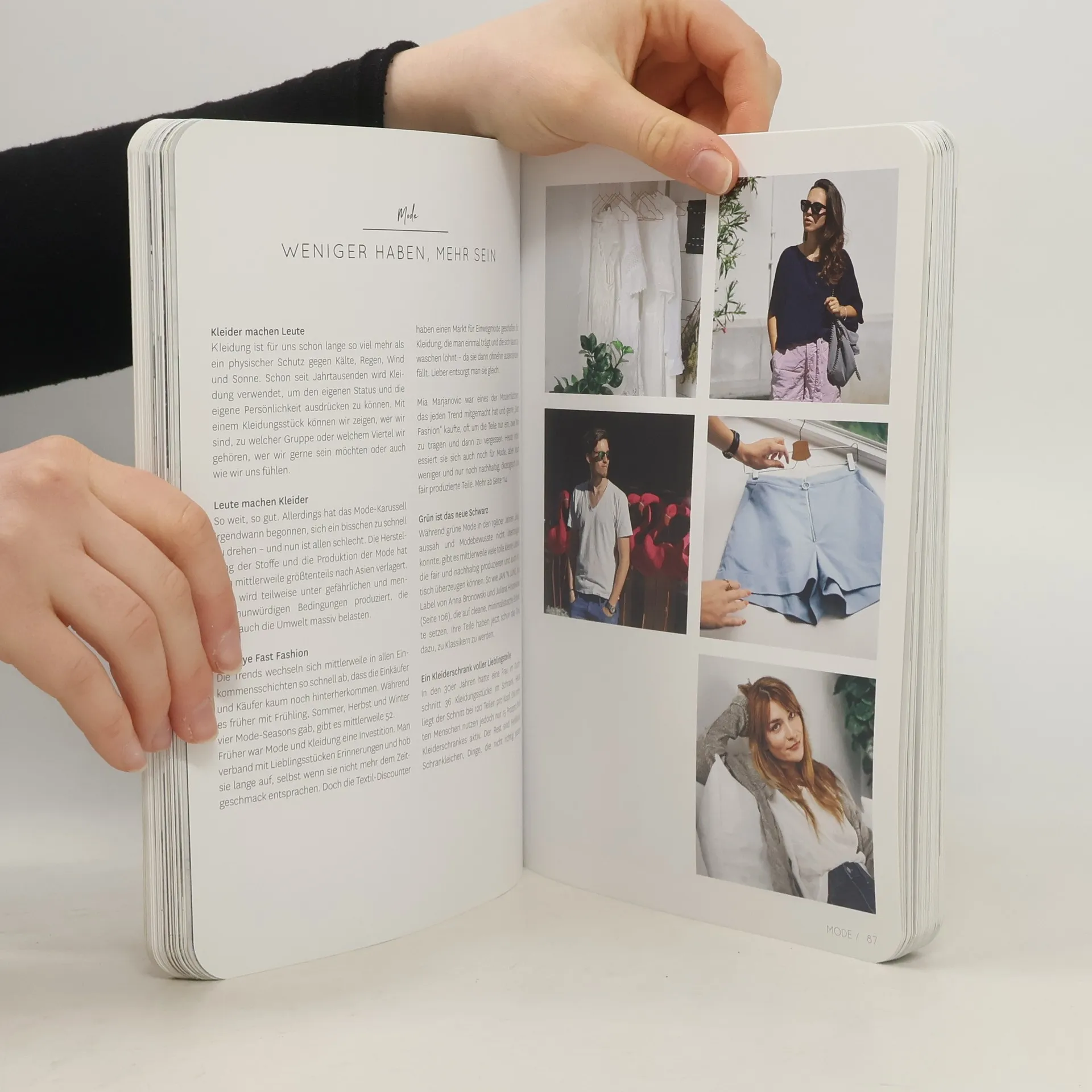 Dieser Minimalismus-Ratgeber im Magazin-Look stellt in über 200 Bildern, aufgeteilt in die Kapitel Wohnen, Mode, Körper und Lifestyle einen minimalistischen Lebensstil vor. Inspirierende Homestorys zeigen, wie eine minimalistische Wohnung aussehen kann, wie man perfekt Ordnung schafft oder wie es sich in einem Tiny House lebt. Die Autorin blickt in einen aufgeräumten Kleiderschrank mit wenigen, unterschiedlich kombinierbaren Kleidungsstücken und zeigt, wie man überlegt einkauft und dabei seinem Stil treu bleibt. Außerdem erfährt der Leser etwas über nachhaltige oder selbst hergestellte Kosmetik, aber auch Rezepte und Tipps für das minimalistische Denken, Digital Detox, Work-Outs, Reisen, Zero Waste oder nachhaltigen Konsum sind enthalten. Mit Fotografien von Marlen Mueller.