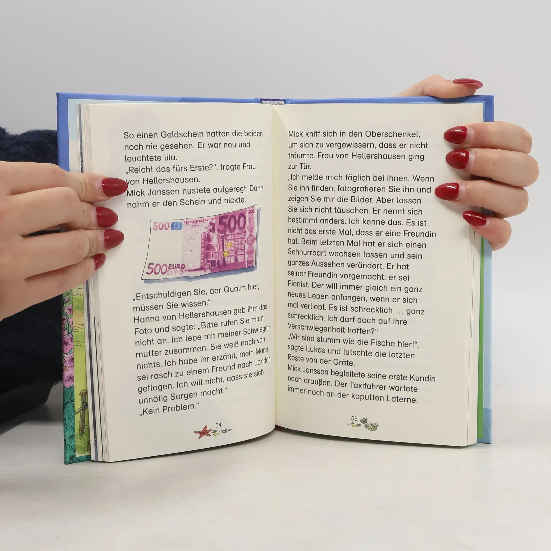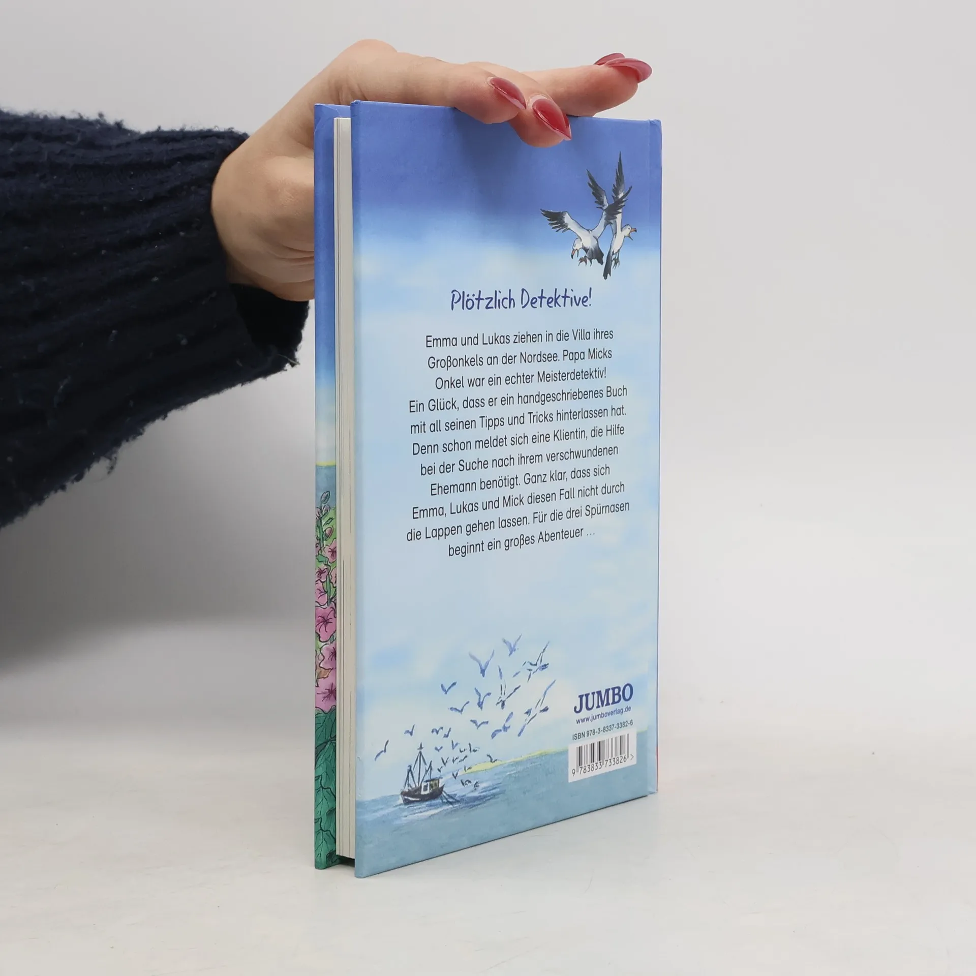 Klaus-Peter Wolf ist in den letzten Jahren vor allem mit seinen Ostfriesenkrimis mit Kommissarin Klaasen sehr erfolgreich. Nun legt er gemeinsam mit seiner Lebensgefährtin, der Kinderliedermacherin Bettina Göschl, eine Krimireihe für Grundschulkinder auf. Familie Janßen zieht von Oberhausen nach Norddeich, denn dort haben sie das Haus ihres Großonkels Theo geerbt. Leider ist die alte Villa in einem verwahrlosten Zustand. Und gleich am 1. Abend steht eine fremde Dame in der Tür, die ihren vermissten Ehemann sucht - Onkel Theo war Detektiv. Weil die Kundin eine gute Bezahlung verspricht, nimmt der zerstreute Papa Mick den Auftrag an, stellt sich aber beim Detektiv spielen so dumm an, dass er selbst verhaftet wird. Die Kinder Emma und Lukas müssen nun den Fall lösen und auch noch ihrem Vater aus der Patsche helfen. Behäbig erzählter und wenig pfiffiger Kinderkrimi um eine Geldfälscherbande und eine alle Klischees erfüllende böse Betrügerin im weißen Pelzmantel