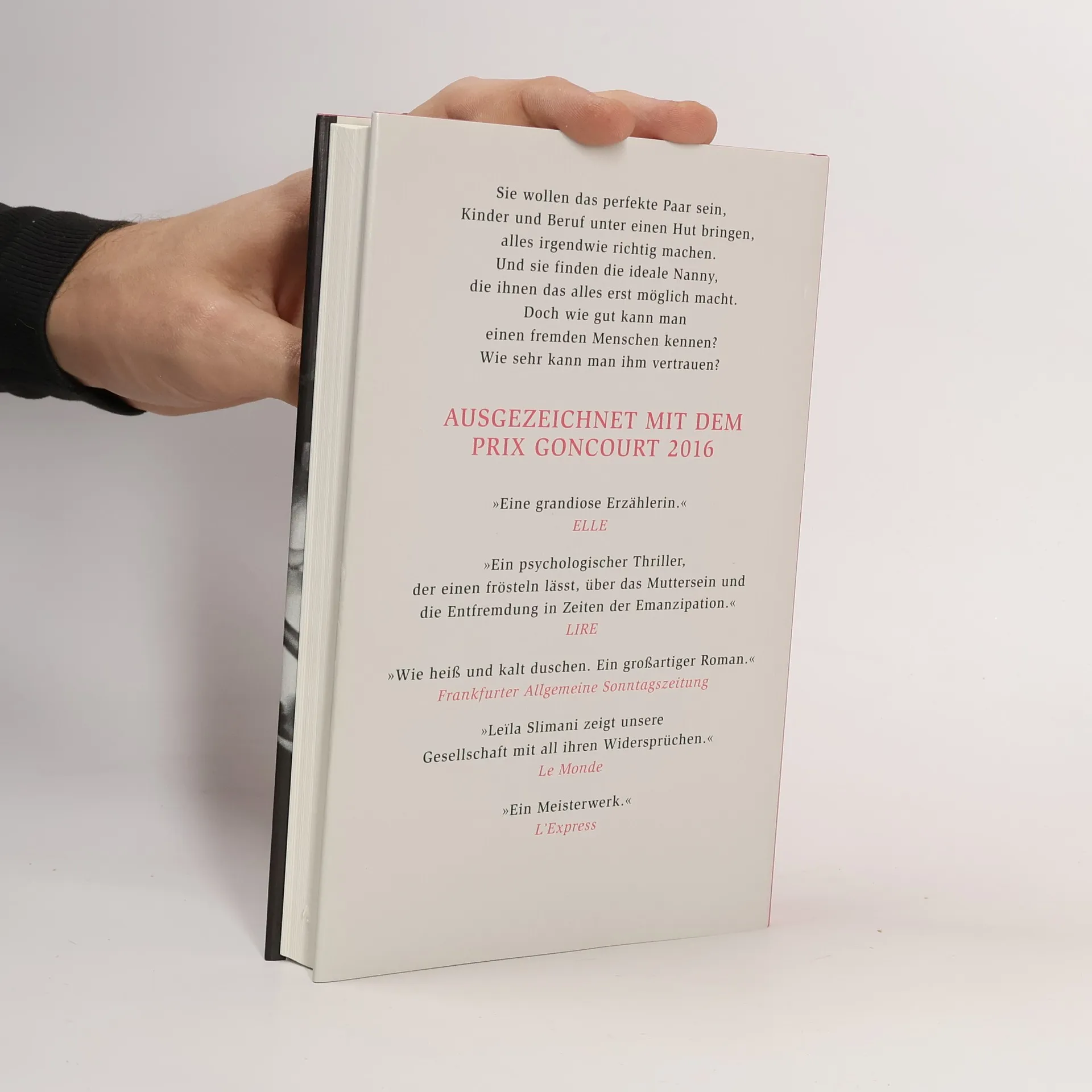 Der Preis des Glücks Sie wollen das perfekte Paar sein, Kinder und Beruf unter einen Hut bringen, alles irgendwie richtig machen. Und sie finden die ideale Nanny, die ihnen das alles erst möglich macht. Doch wie gut kann man einen fremden Menschen kennen? Und wie sehr kann man ihm vertrauen?Sie haben Glück gehabt, denken sich Myriam und Paul, als sie Louise einstellen - eine Nanny wie aus dem Bilderbuch, die auf ihre beiden kleinen Kinder aufpasst, in der schönen Pariser Altbauwohnung im 10. Arrondissement. Wie mit unsichtbaren Fäden hält Louise die Familie zusammen, ebenso unbemerkt wie mächtig. In wenigen Wochen schon ist sie unentbehrlich geworden. Myriam und Paul ahnen nichts von den Abgründen und von der Verletzlichkeit der Frau, der sie das Kostbarste anvertrauen, das sie besitzen. Von der tiefen Einsamkeit, in der sich die fünfzigjährige Frau zu verlieren droht. Bis eines Tages die Tragödie über die kleine Familie hereinbricht. Ebenso unaufhaltsam wie schrecklich.