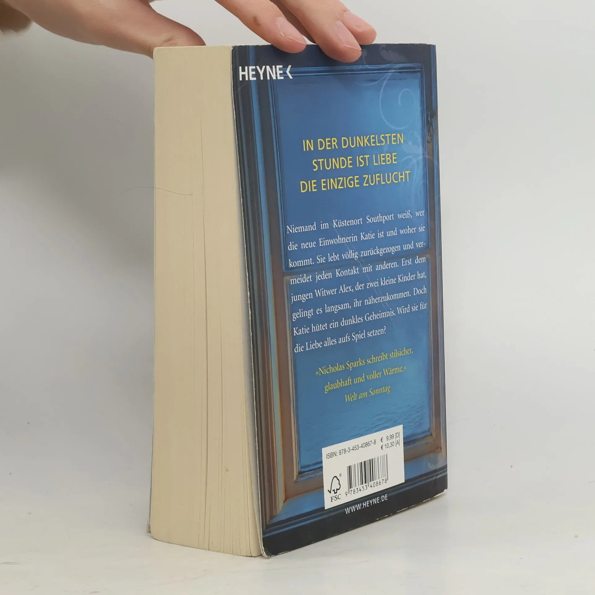 Niemand schreibt über die Liebe wie Nicholas Sparks Niemand im Küstenort Southport weiß, wer die neue Einwohnerin Katie ist und woher sie kommt. Sie lebt komplett zurückgezogen und vermeidet jeden Kontakt mit anderen. Erst dem jungen Witwer Alex, der zwei kleine Kinder hat, gelingt es langsam und behutsam, ihr näherzukommen. Doch Katie hütet ein dunkles Geheimnis. Wird sie für die Liebe alles aufs Spiel setzen?