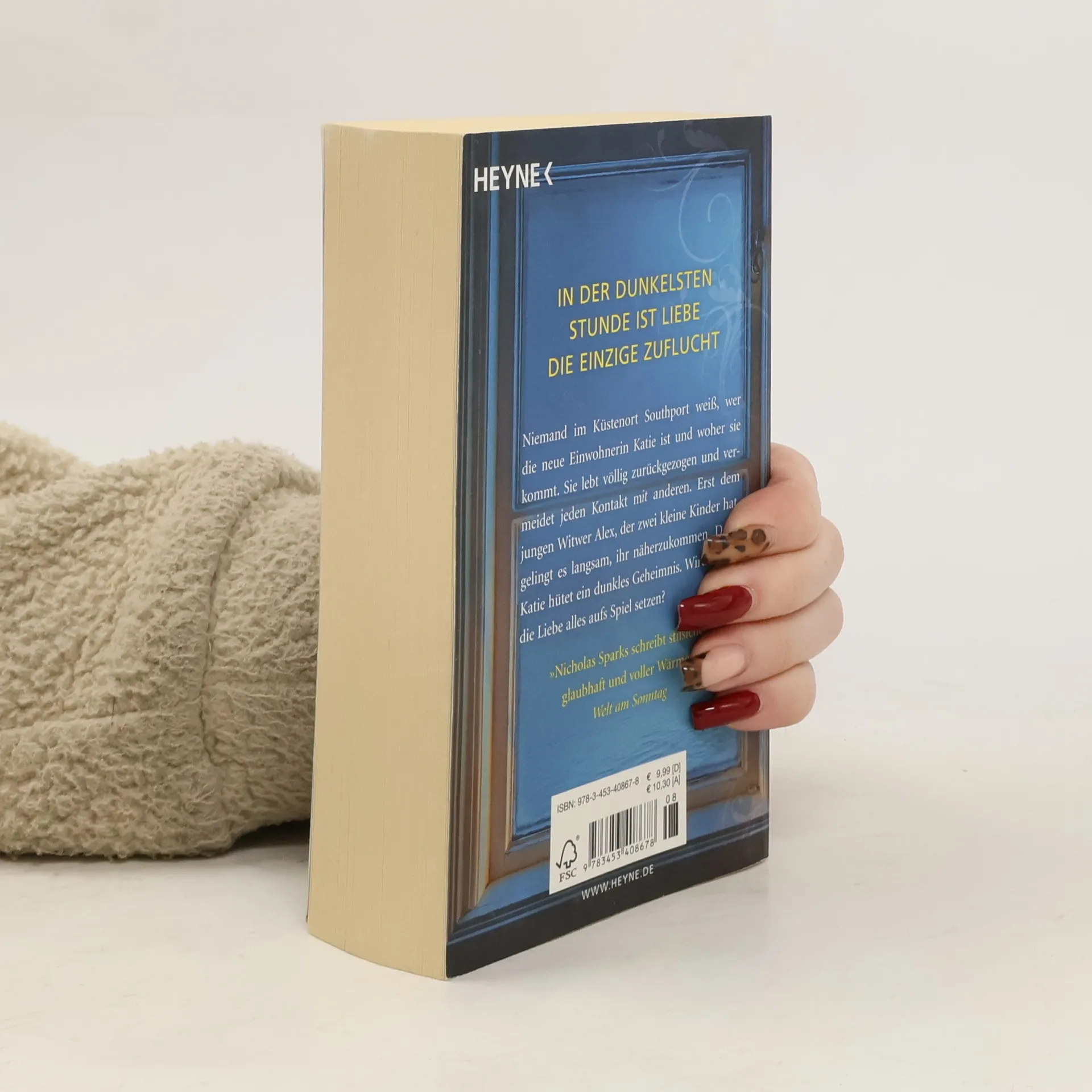 Niemand schreibt über die Liebe wie Nicholas Sparks Niemand im Küstenort Southport weiß, wer die neue Einwohnerin Katie ist und woher sie kommt. Sie lebt komplett zurückgezogen und vermeidet jeden Kontakt mit anderen. Erst dem jungen Witwer Alex, der zwei kleine Kinder hat, gelingt es langsam und behutsam, ihr näherzukommen. Doch Katie hütet ein dunkles Geheimnis. Wird sie für die Liebe alles aufs Spiel setzen?