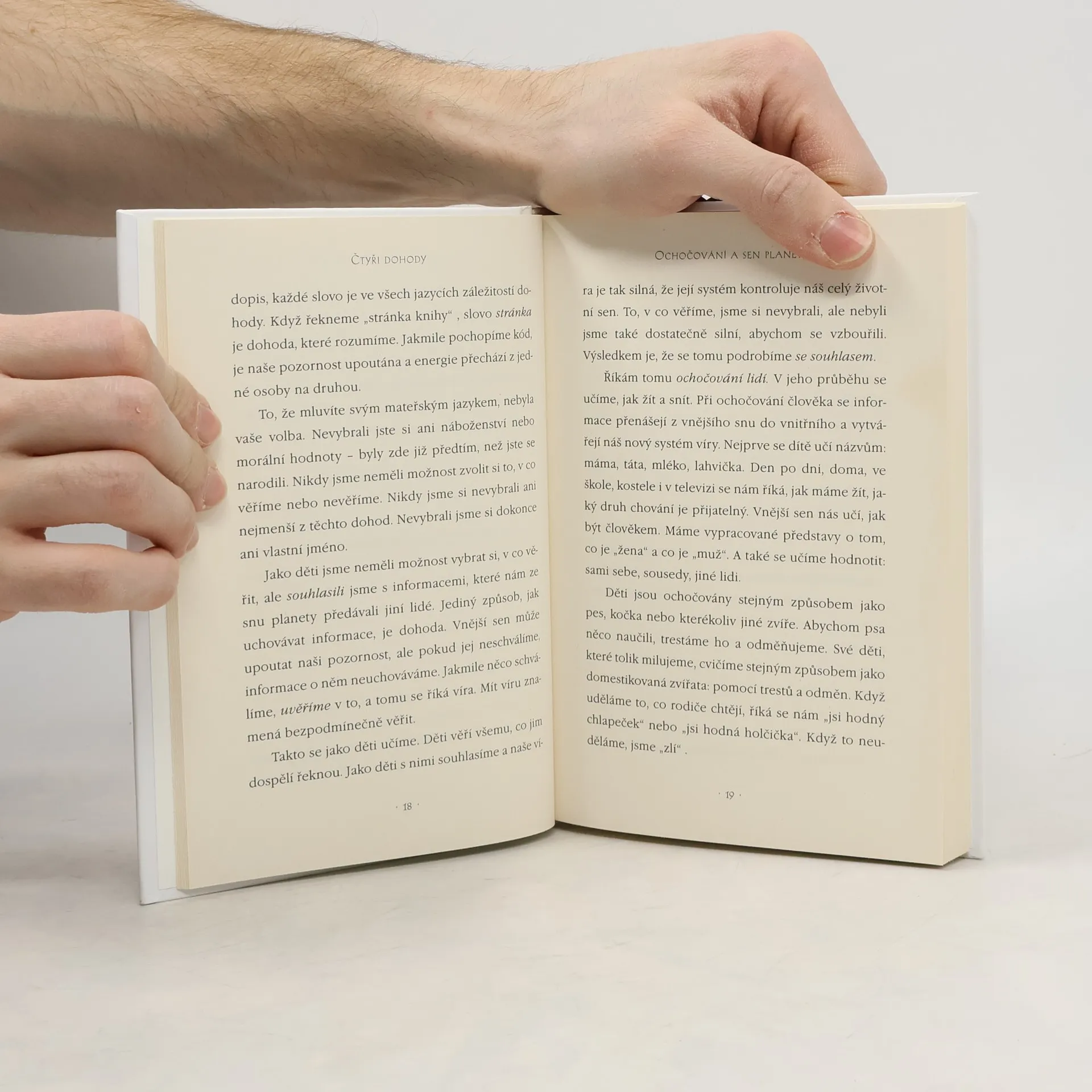 Ve Čtyřech dohodách odhaluje don Miguel Ruiz zdroj špatných životních návyků, které nás připravují o radost a vedou ke zbytečnému utrpení. Čtyři dohody, založené na staré toltécké moudrosti, nabízejí nový přístup k vlastnímu vnitru, abychom dokázali proměnit svůj život v prožitek svobody, opravdového štěstí a lásky.